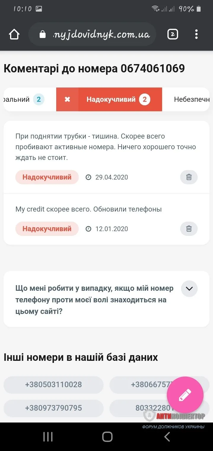 По сайту тел.справочн.вот таки отзывы о номере