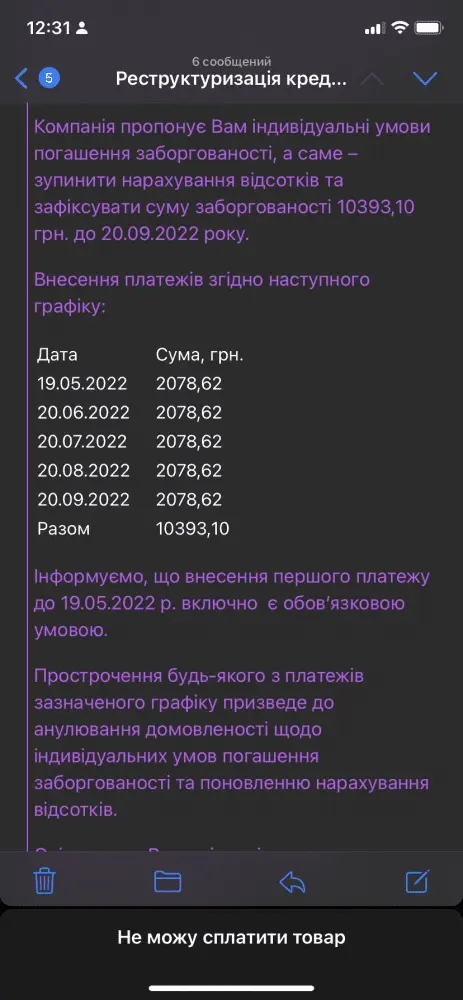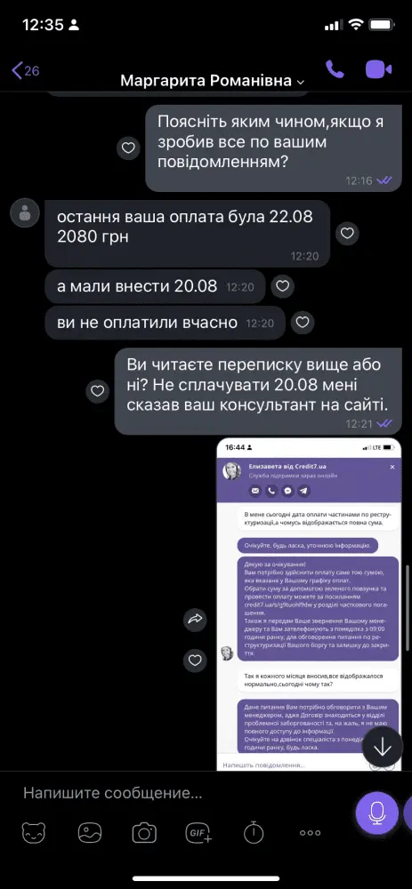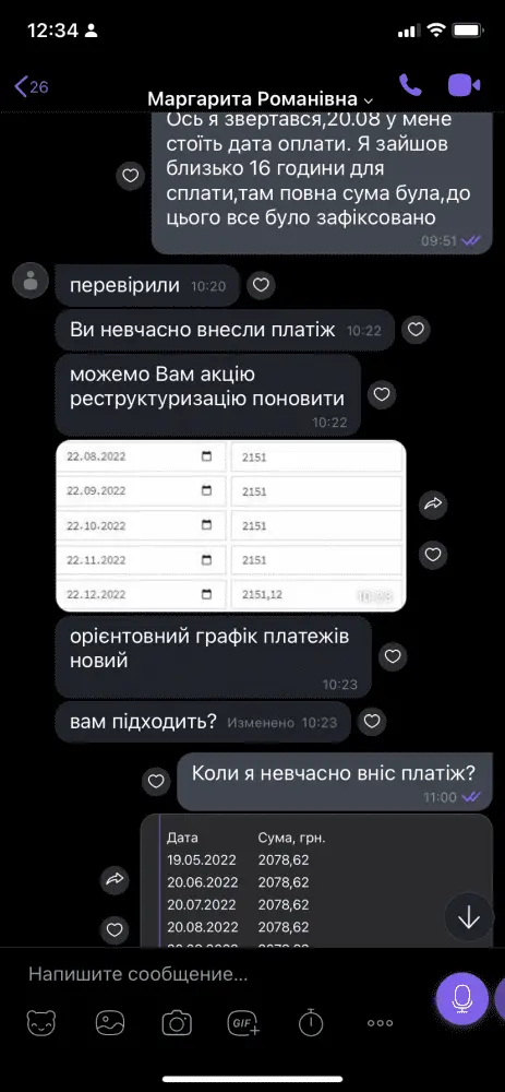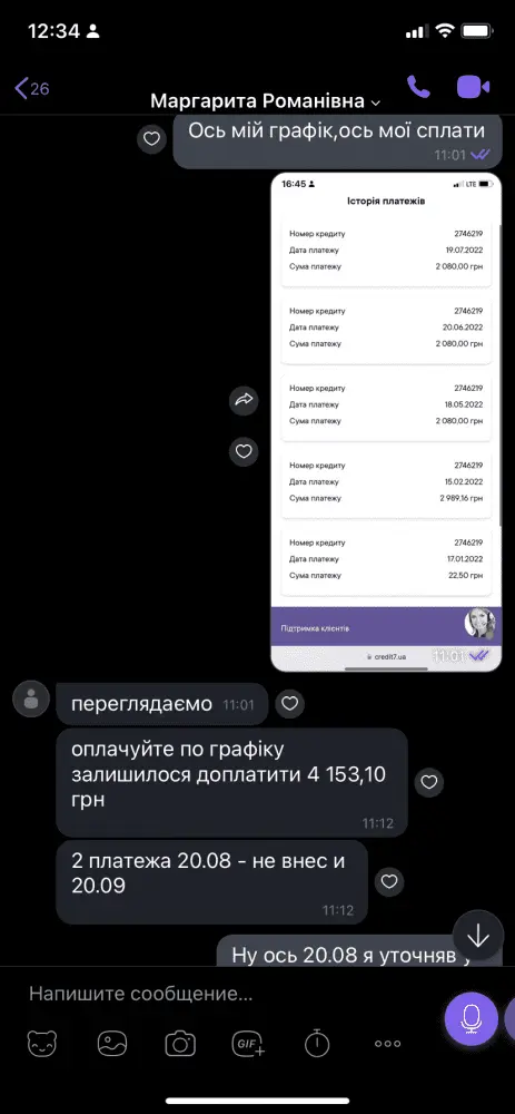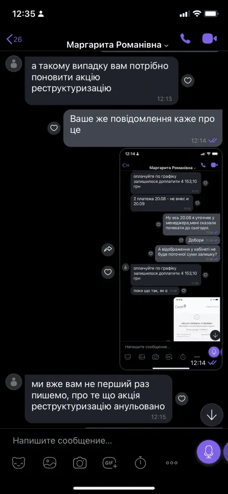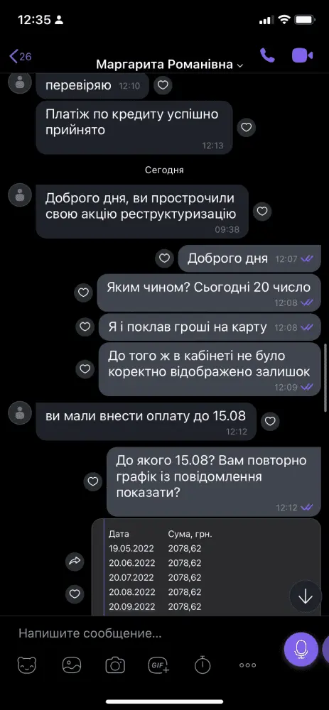 Доброго дня,потрапив у таку історію. Сплачував и все було нормально,до серпня. Потім сайт показав знову повну суму и ось увесь діалог. Можна сказати я просто викинув гроші?