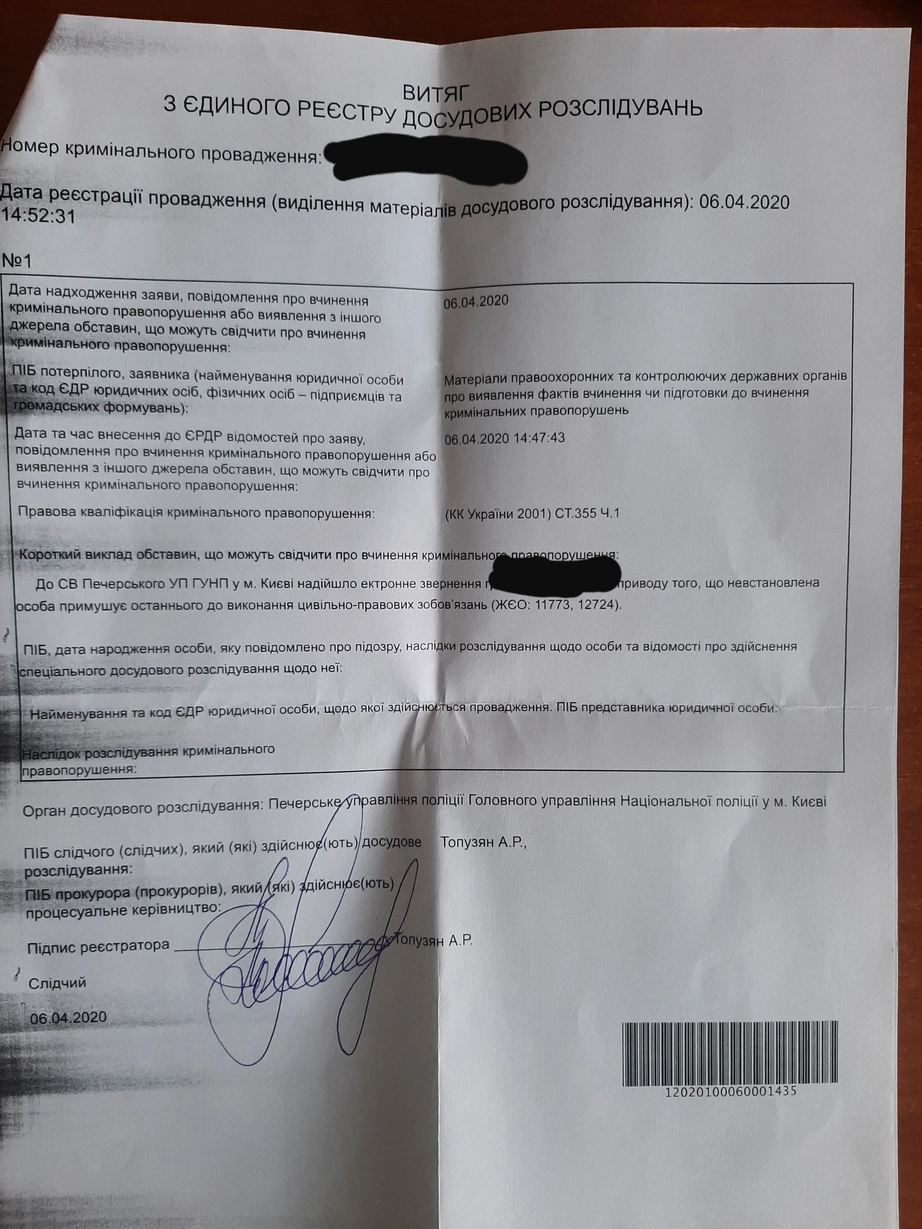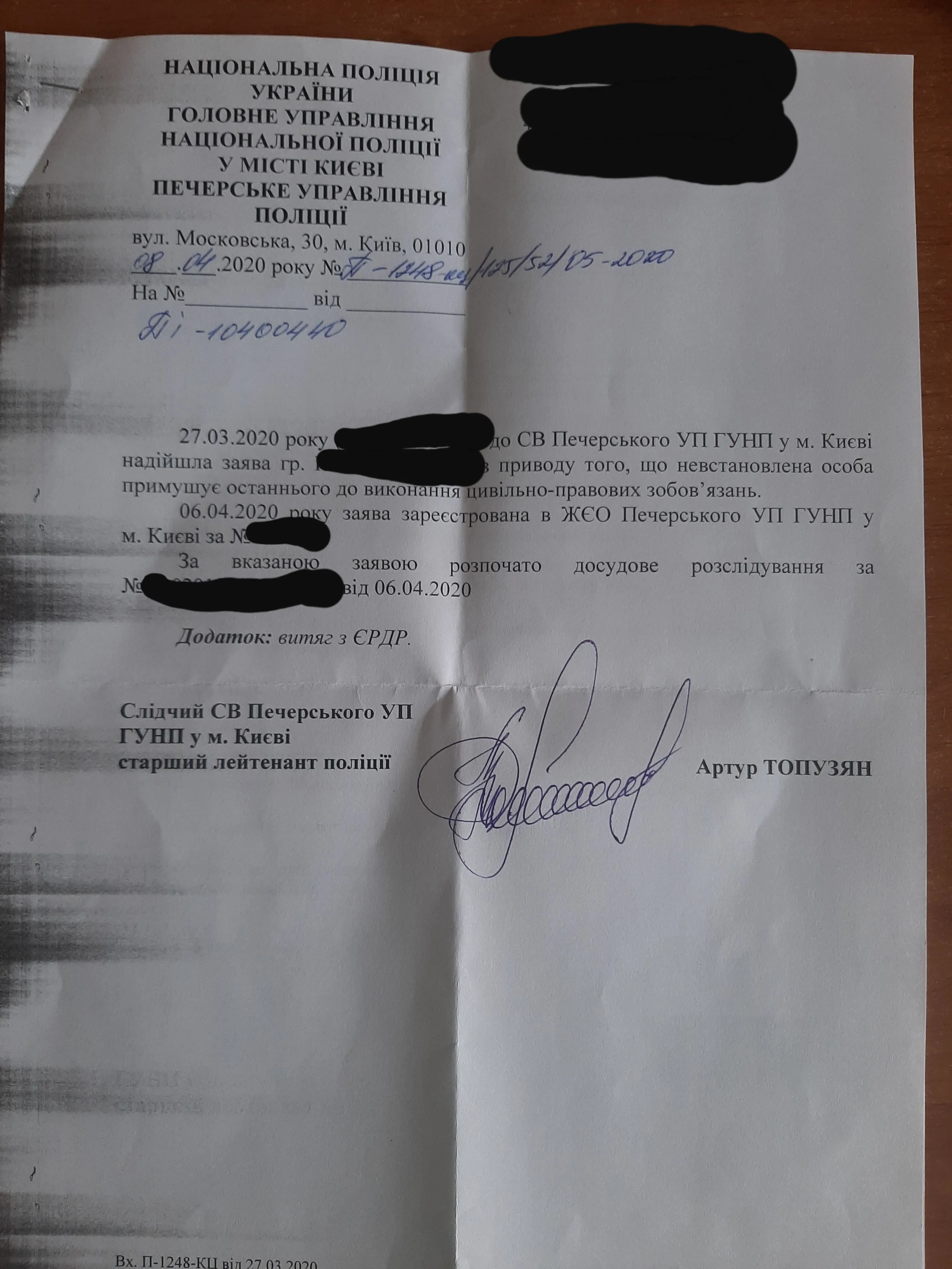 Одно письмо пришло от Нацком , но на 4 листах толком ничего толкового нет , поэтому не стала его выкладывать. Написали, что угрозы это не в их компетенции и они передали мое дело в управление полиции. А вот с полиции пришло письмо о том, что открыто провадження. Скрины приложила . Пока не знаю чем закончится, но думаю может хоть немного их потрясут