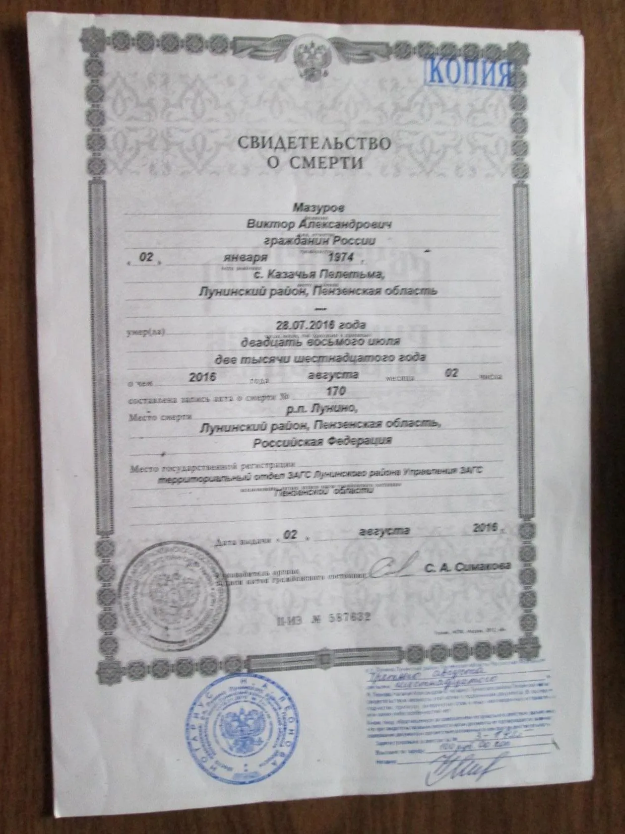 А это и есть основной документ после паспорта.Паспорт не действителен уже.Хотя все возможно,иногда говорят типа не нашли,а потом выплывает,что на *мертвые души* чего только не оформленно.прислал ксерокопию свидетельства о смерти , документы ее не отдает ,