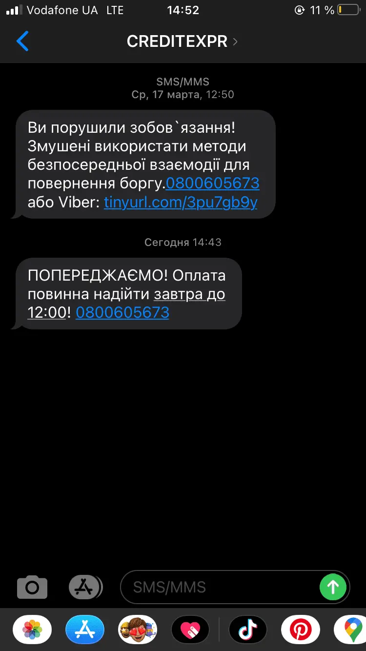 Привіт всім. Я на форумі більше ніж пів року. І боржник вже з невеличким стажем( більше року). Вже наче все знаю про ці канторки.Але знаєте, моментами так накриває. Оці постійні дзвінки. Останнім часом тарабане Фактор, КК. Від кого? За шо? Хз. Не спілкуюся з ними. Кредит експрес десь взявся. Смс про продаж моїх боргів не отримувала. Залишилися Дінеро, Укр позика, Таліон, кашинський і Євро гроші. За цей рік закрила близько 10 штук. І не спілкувалася ні з ким. Сьогодні придетіло таке смс від кредит експресу. Це розсилка, чи вони дійсно щось задумали?