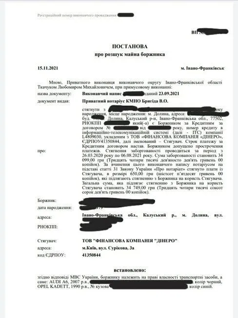 Розыск авто должника