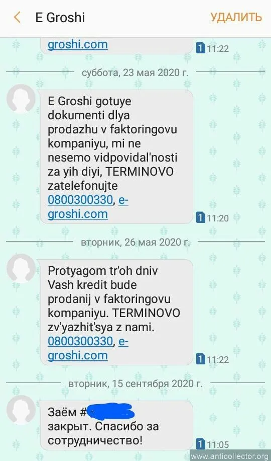 А мені на вайбер писав Борис Альбертович,ще й скинув моє фото з паспортом і сказав якщо я не оплачу то все піде в інтернет і т.д.3 4000 нарахували аж 43 тисячі з копійками,а договорилися на 10000грн,і то я їм заплатила 1000 грн і заплачу ще 4000 і пішли вони лісом, взагалі оборзіли