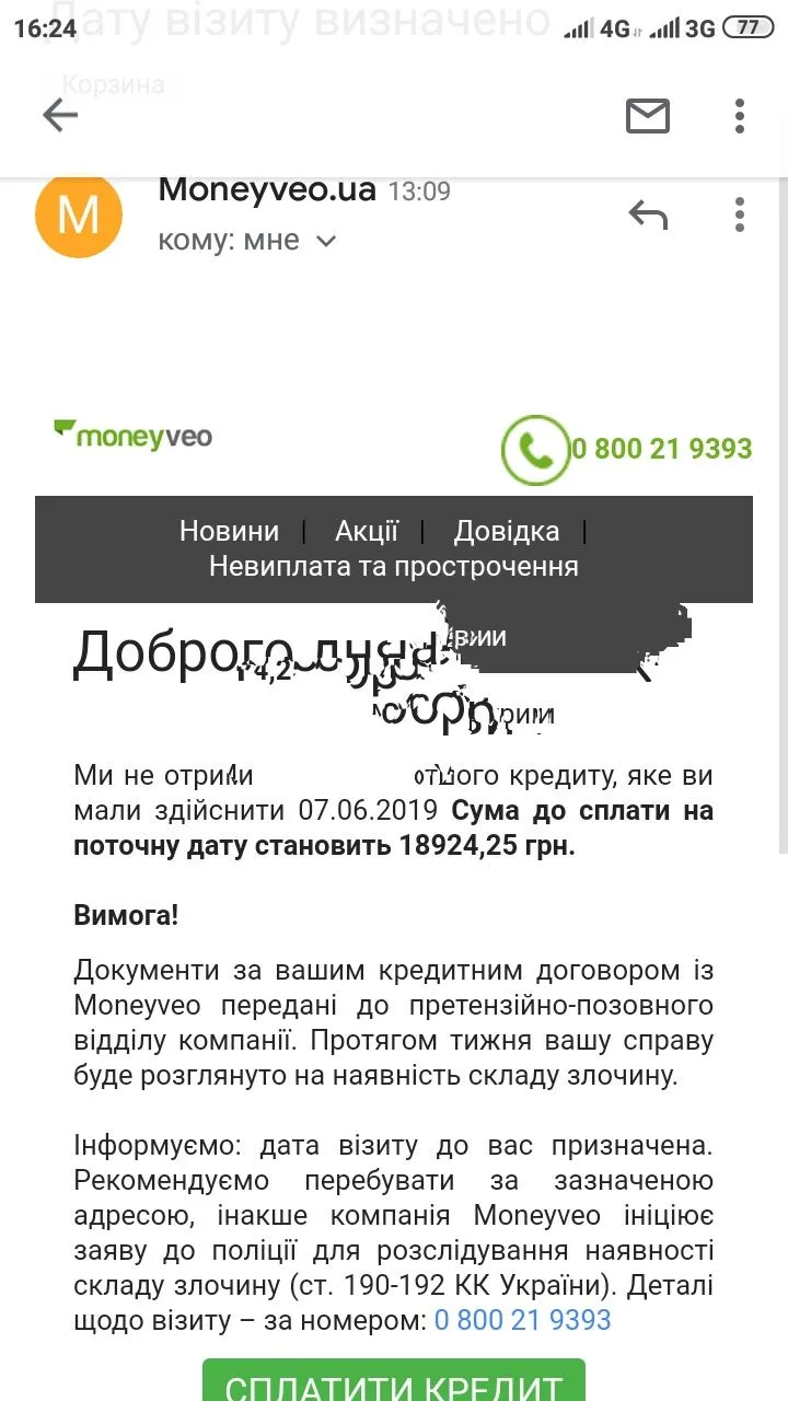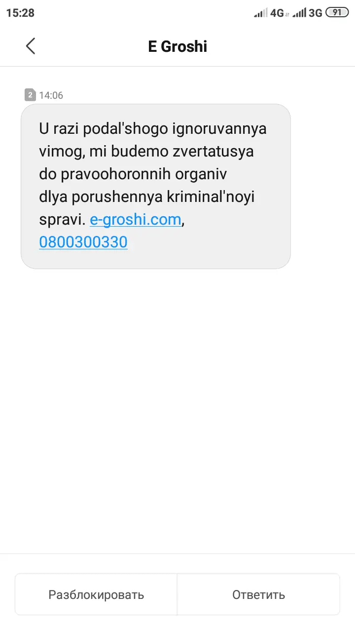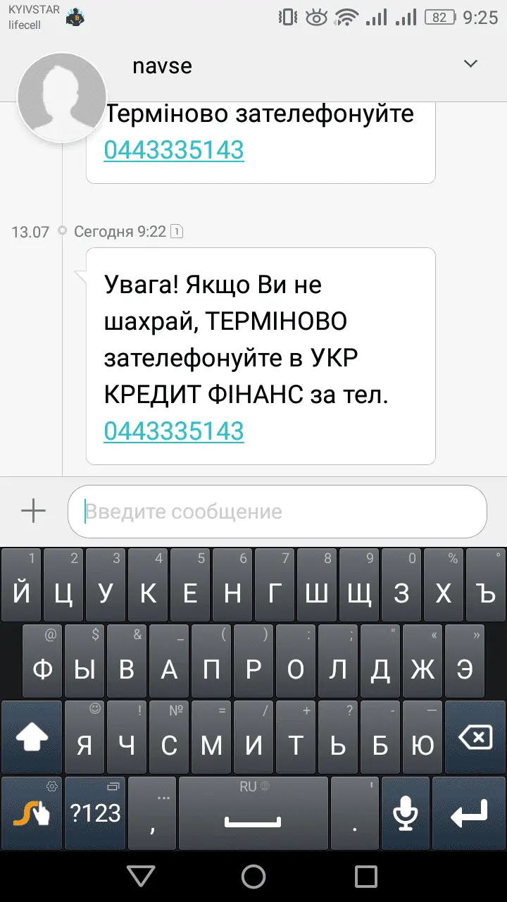 Сегодня даже с перепугу забыла название компании сказали так "мы убьём вашу дочь а вы сидите как мошенница" у меня ступорменя больше всего смешат смс пугалки что арестуют все мои счета)) откуда у нищеброда счета мне не понять...))
