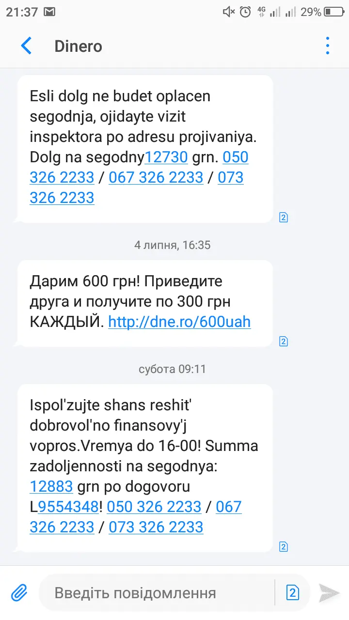 Прошу скидывать скрины (с затиранием личных данных, естественно). Люди на это ведутся, бегут искать деньги на пролонгации, с ума сходят. Считаю что такая инфа должна быть под рукой. Человек в панике не всегда в состоянии читать весь форум.