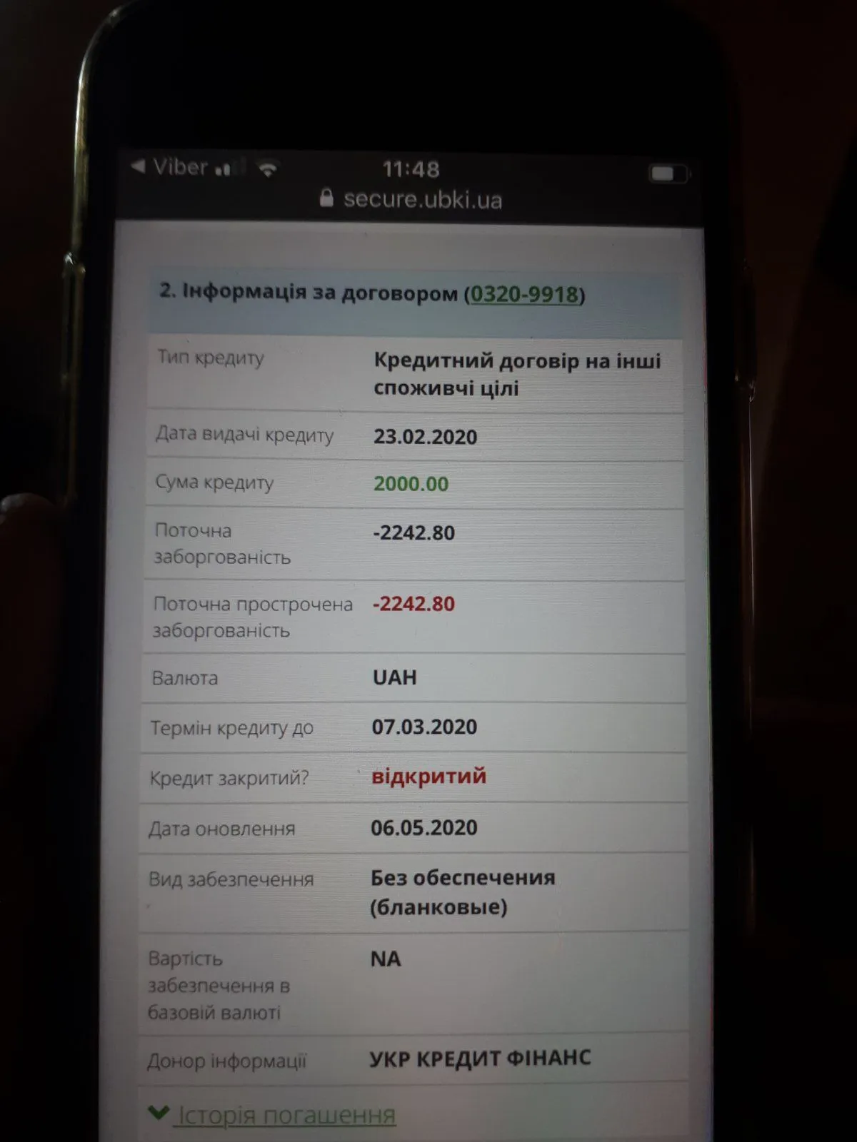 на карте в истории платеже дожно быть от укр кредита платеж если он был?