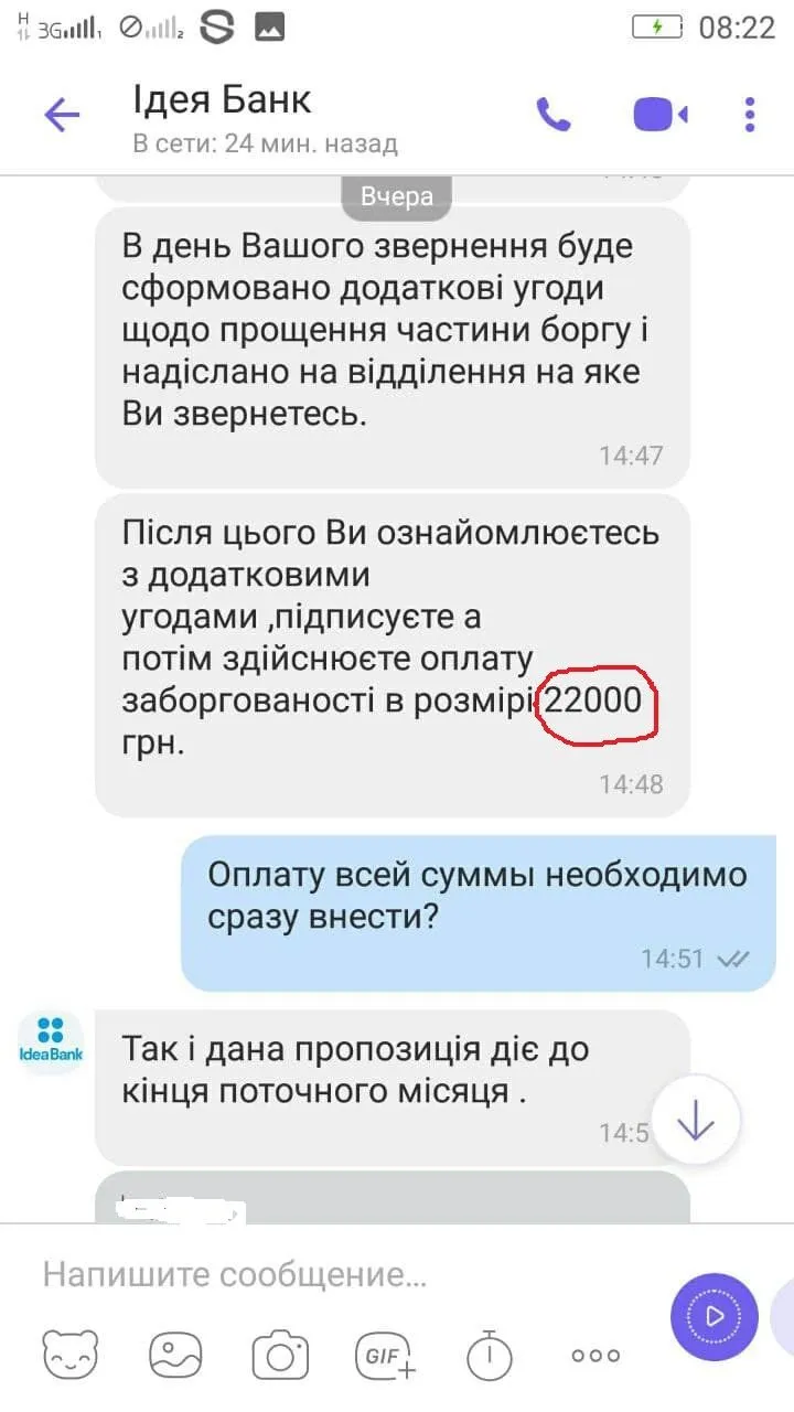Всем привет. Вчера пришло сообщение на вайбер. Просрочка по двум картам где-то 9-10 месяцев (одна 10к, вторая 20к). Денег сейчас нет, чтобы сразу оплатить такую сумму... Посоветуйте, что делать, кто сталкивался уже!