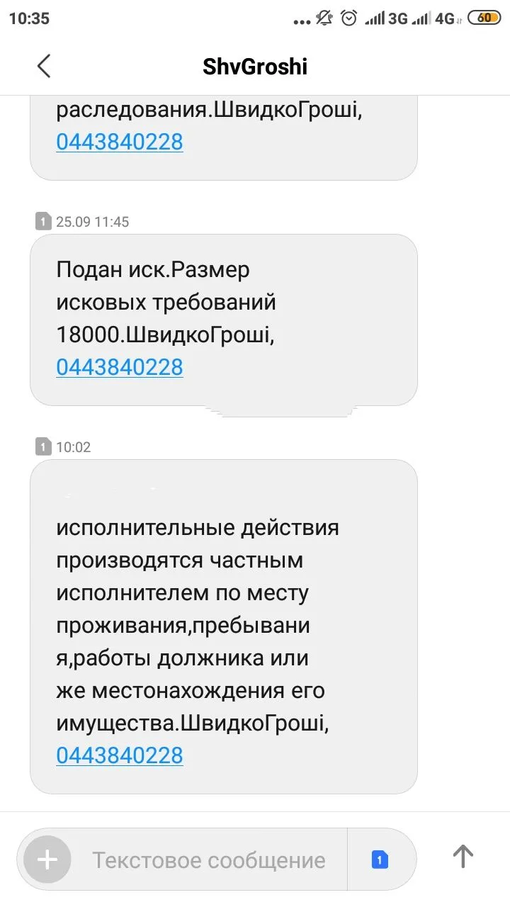 1.Долг признан убыточным.Срочно свяжитесь.ШвидкоГроші,0443840228