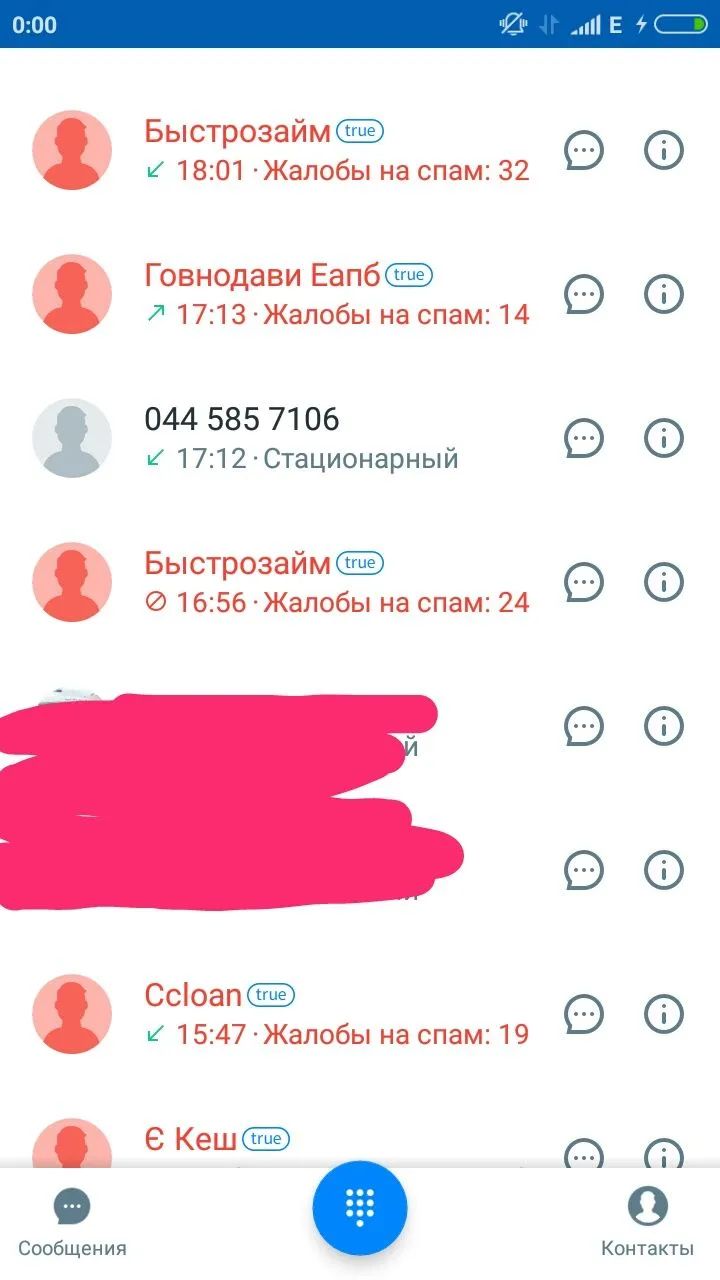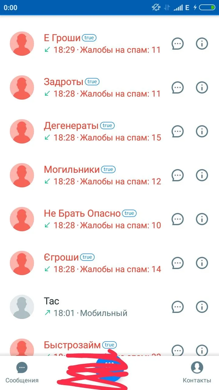 Друзья давайте выкладывать суда скрины из наших программ,кто кому сегодня звонил,вернее как они подписаны,мне кажется для поднятия настроения будет прикольно.