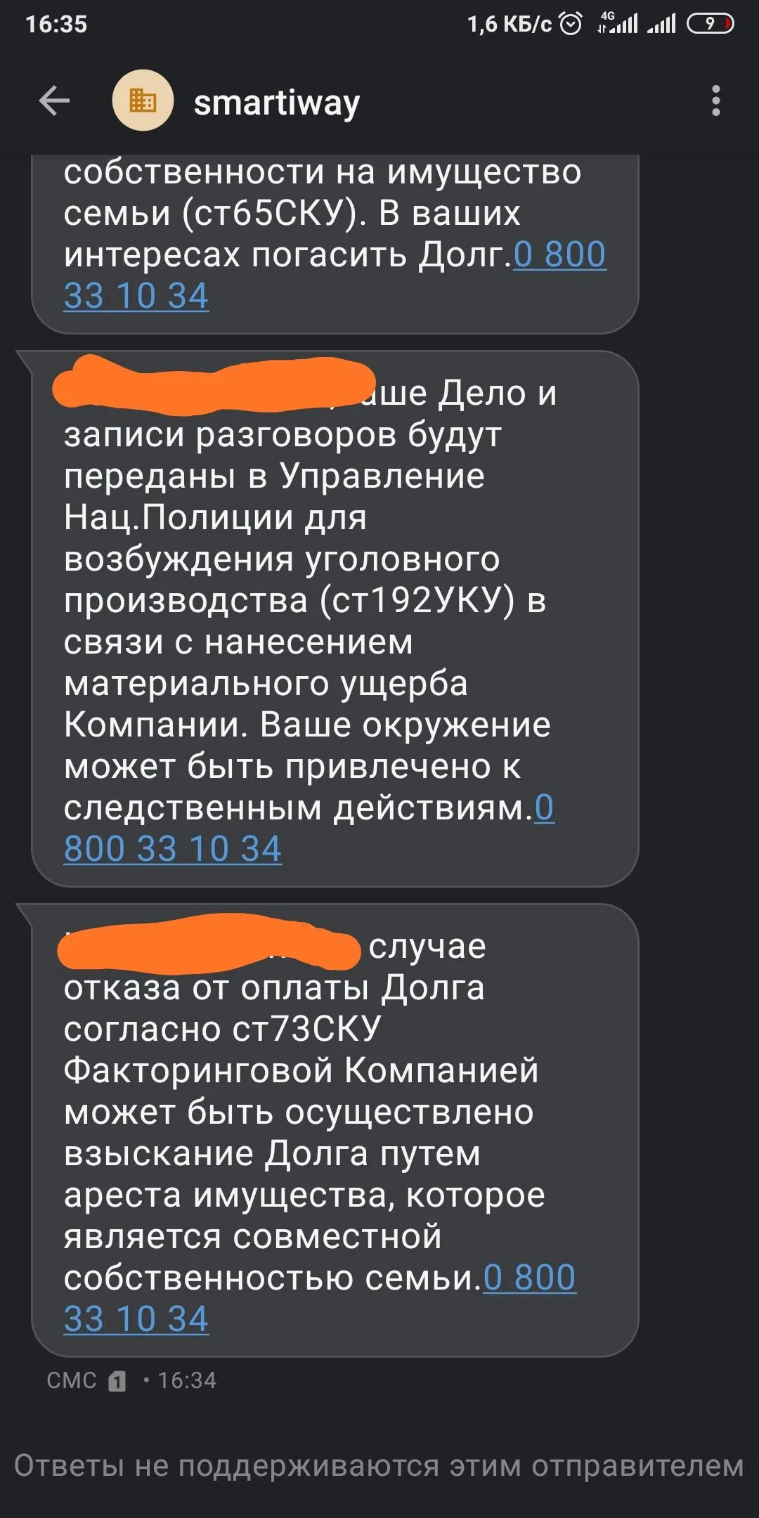 Смартивей сегодня как с цепи сорвались после 25 дней просрочки, закидали страшными смсками, при этом не звонили ни разу, только рассылка. Стоит бояться, реально ли продают кому-то? Тело 3800