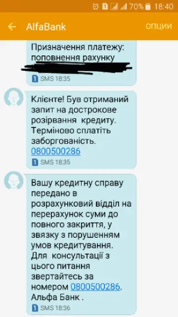 Смс із Альфа банку