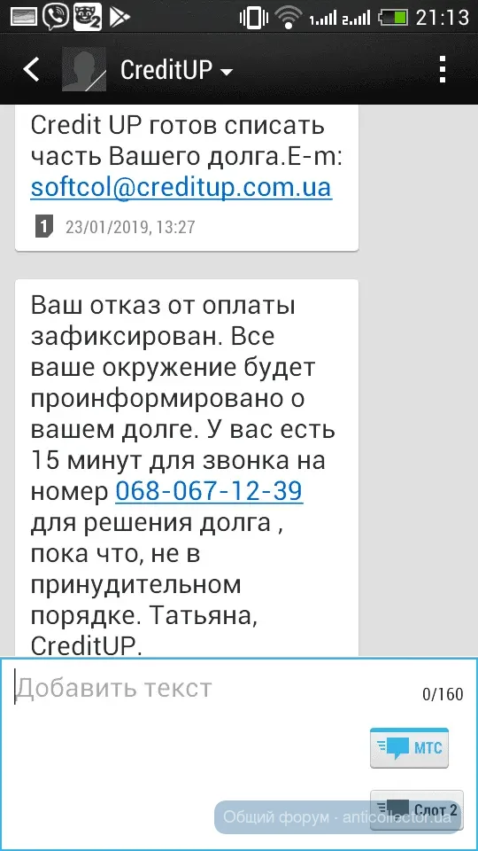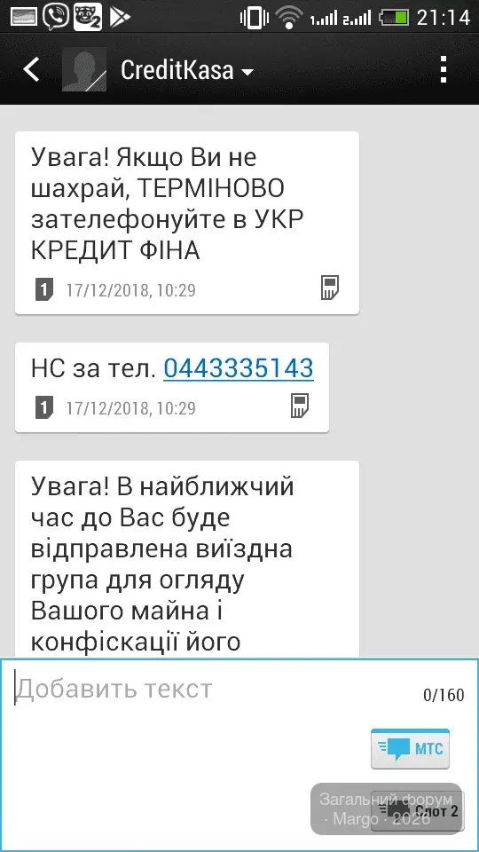 Укр кредит финанс присылали мне подобное еще в октябре. А сейчас, как только про адвоката сказала, так они бедные не знают чем напугать,чтоб заплатила. Сказали завтра в полицию отнесут заявление о мошенничестве. А заявление на себя наверное писать будут.лошары)))))