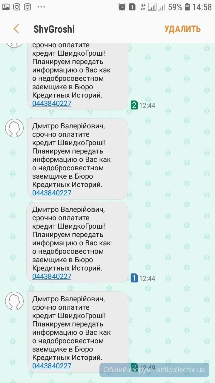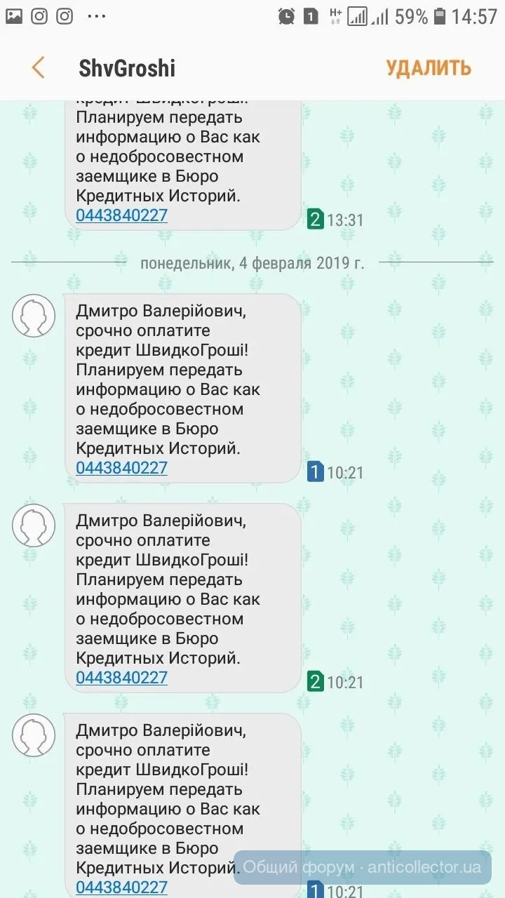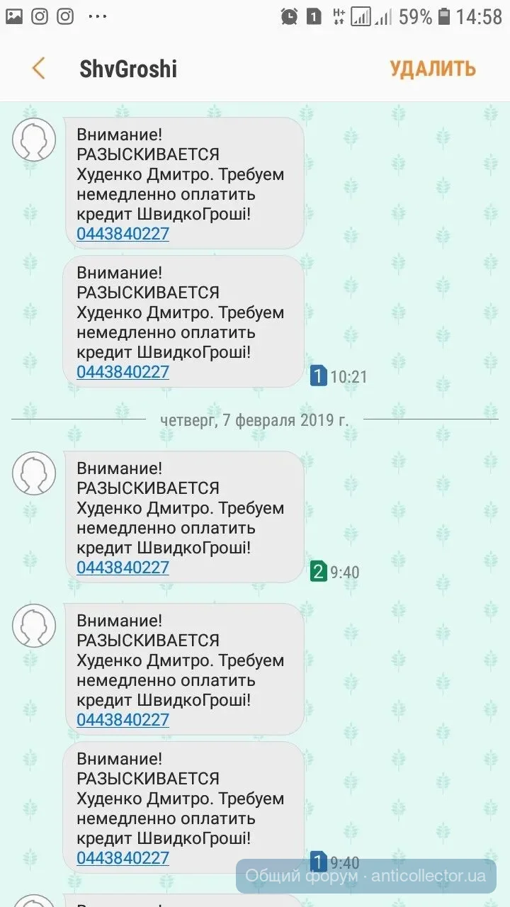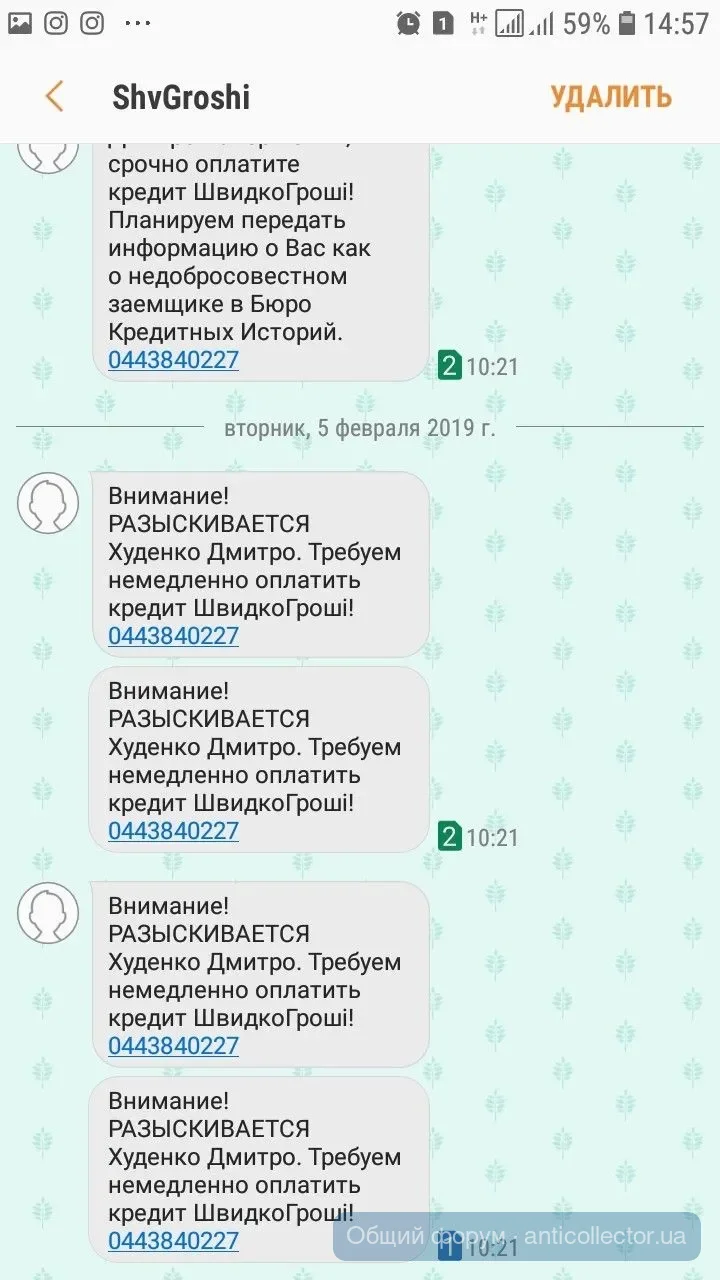 Финфорс звонили ,так грубовато попросили уплатить ,я сказала как только будут деньги уплачу тело,дальше переписка смс,предупреждения,что все может плохо закончиться.В итоге я сказала,что адвокат попросил,чтобы прислали документ подтверждающий переуступку долга с печатью и подписью.Передали привет адвокату и с 20 числа тишина.Укр кредит финанс присылали мне подобное еще в октябре. А сейчас, как только про адвоката сказала, так они бедные не знают чем напугать,чтоб заплатила. Сказали завтра в полицию отнесут заявление о мошенничестве. А заявление на себя наверное писать будут.лошары)))))
