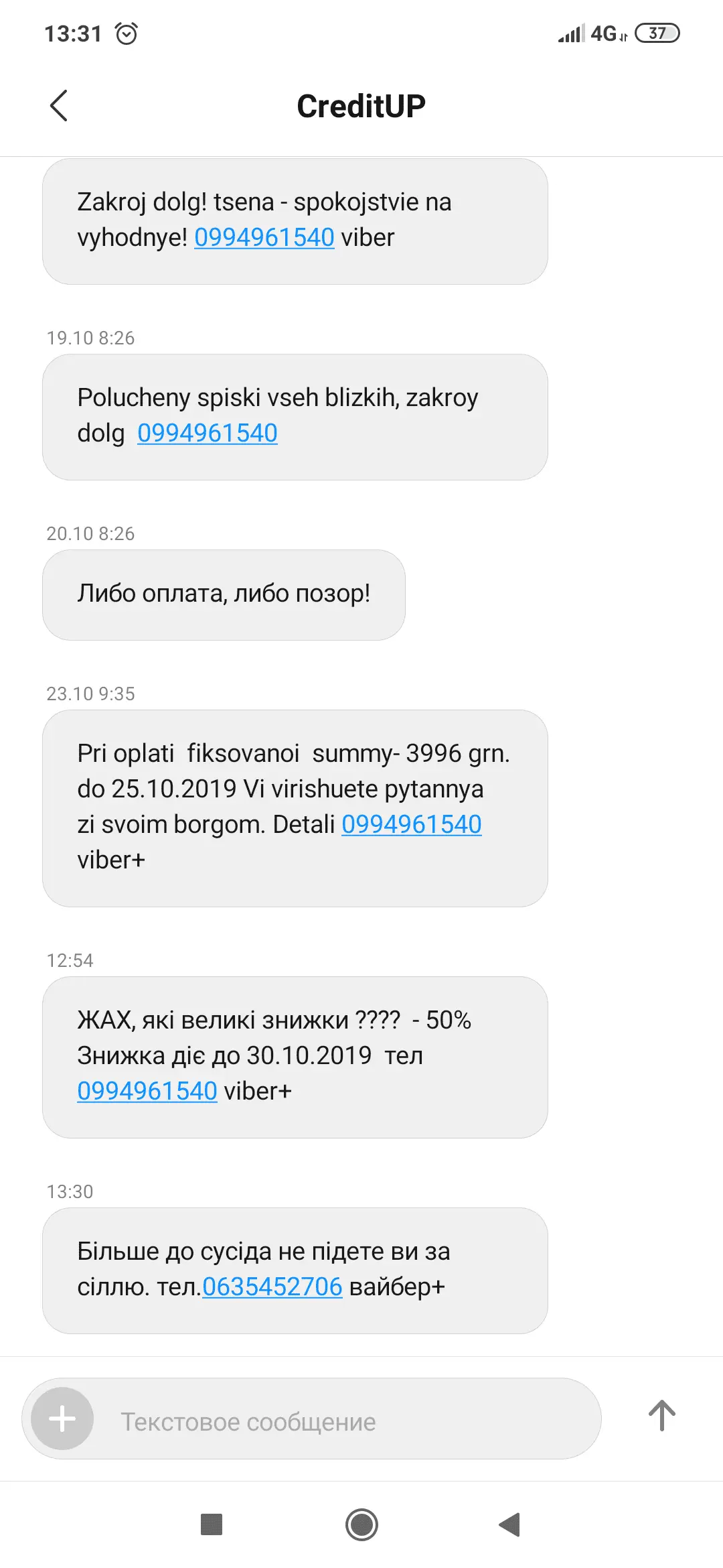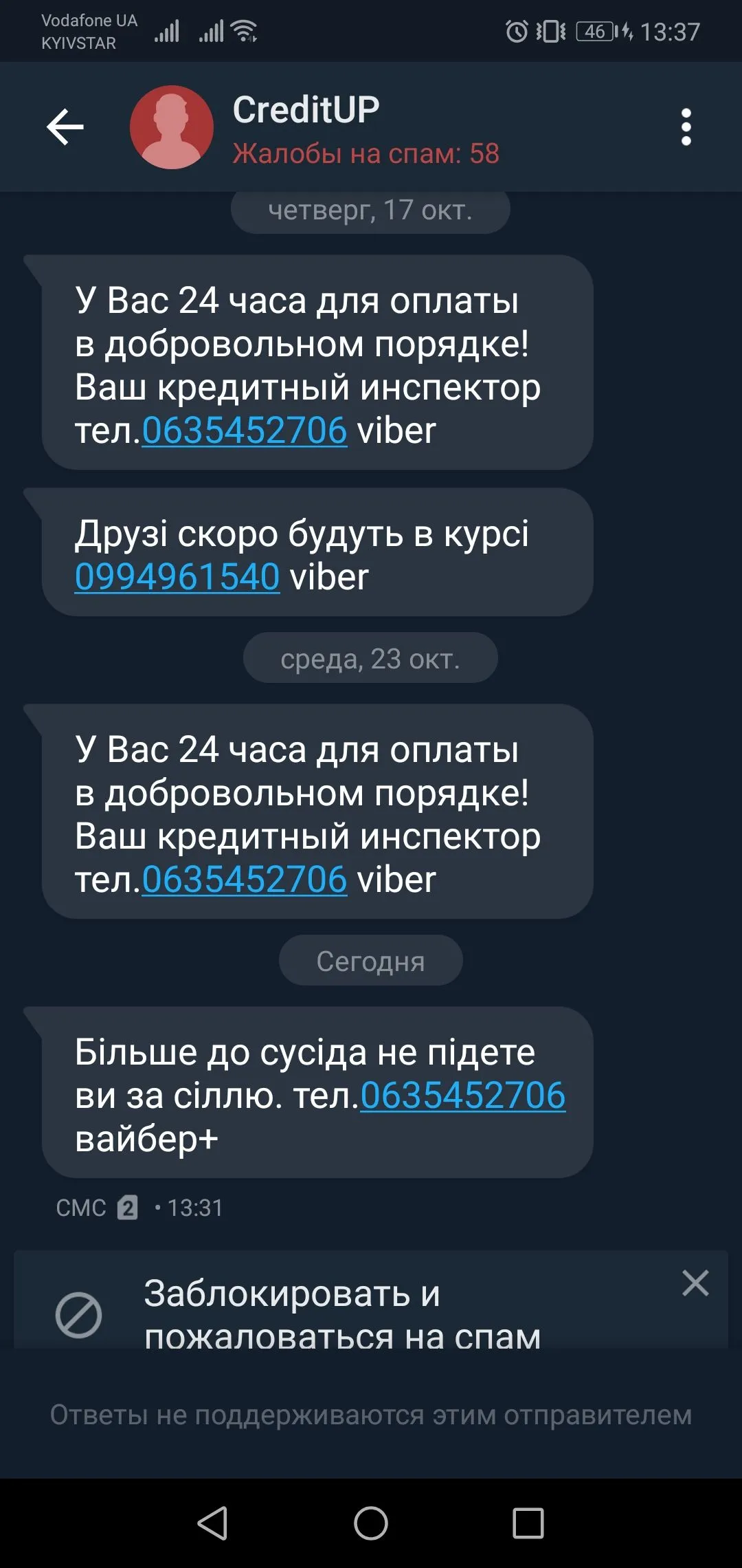Прям таки 1917м повеяло...Комітет з Проблемних активів погодив план щодо накладення арешту на Ваші рахунки та майно. У Вас залишилося 4 дні на добровільне погашення боргу. Сума до сплати зі знижкою 1 954,50 грн. Тел. +380632345192, это Кешберри..