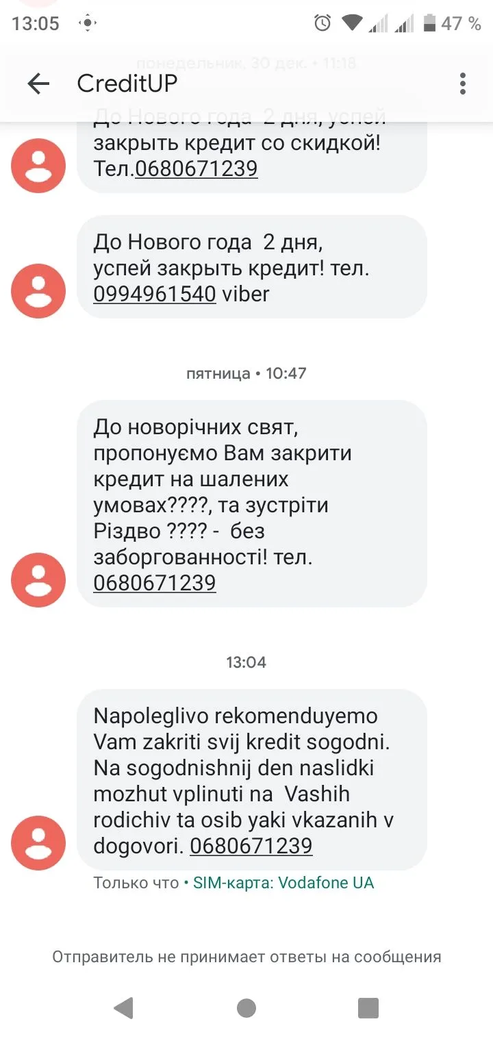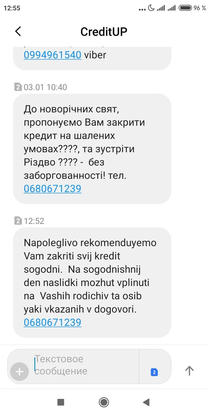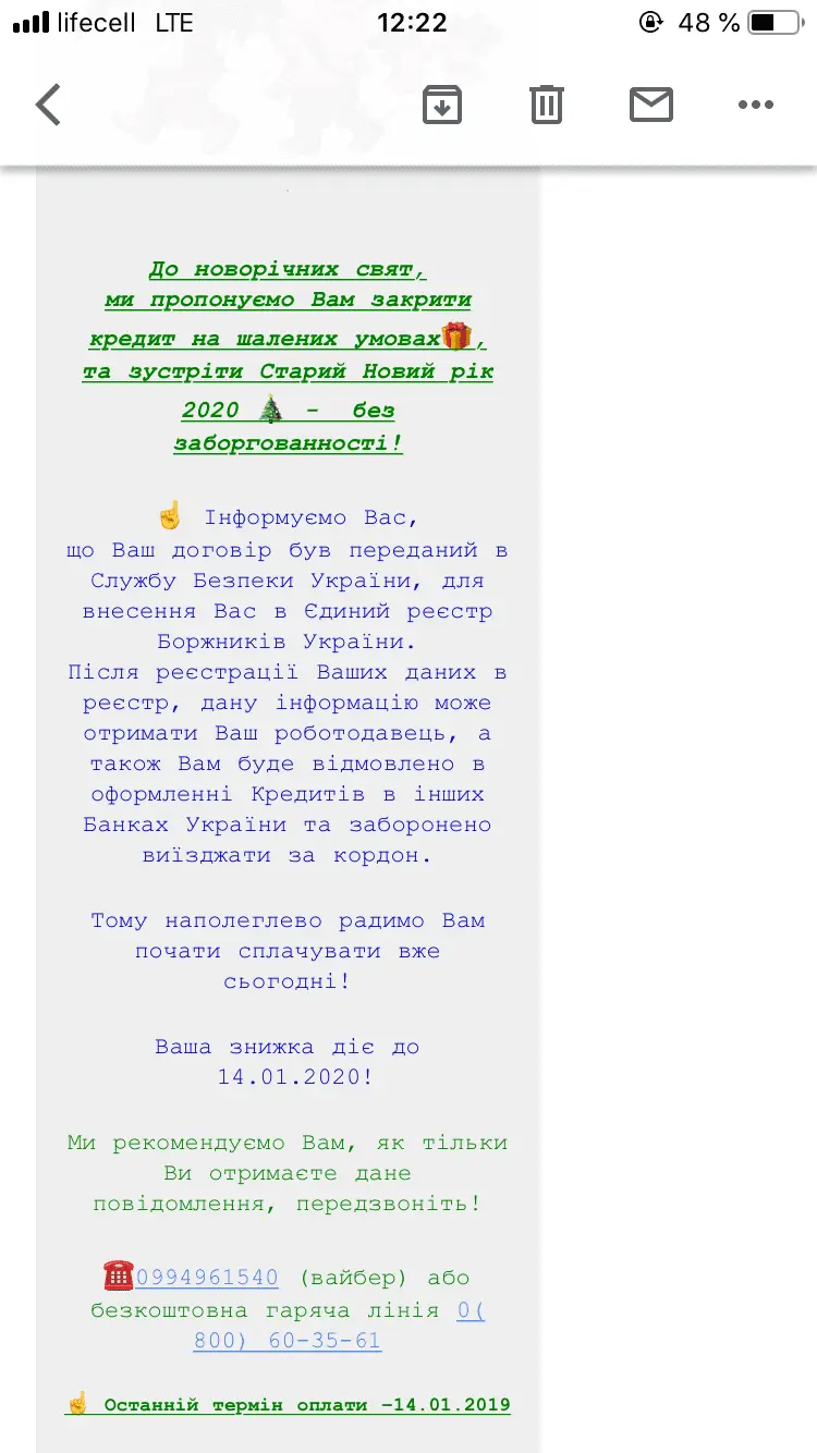 що Ваш договір був переданий в Службу Безпеки України, для внесення Вас в Єдиний реєстр Боржників України.