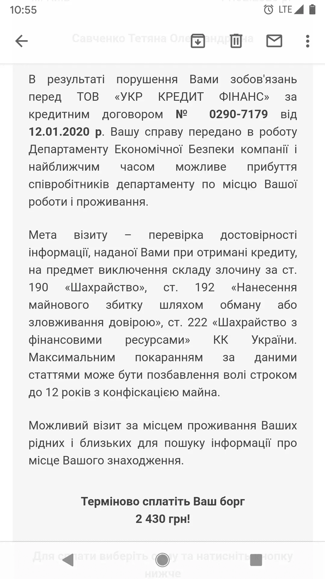 Я понимаю что пугалка. Только почему то кредит присутствует. Но его никто не оформлял, так как они все время отказывали. И тут вуаля. Они оформили сами кредит и требуют его теперь вернуть от человека который его не брал. Чудеса...