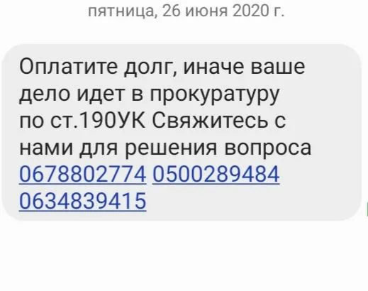 «Терміново зателефонуйте в УКР КРЕДИТ ФІНАНС.Ви знаходитесь в першій десятці на внесення в Список Боржників.0443335143