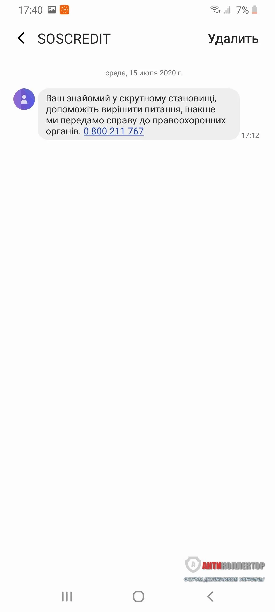 Прийшла така смс мамі. Можуть щось зробити?