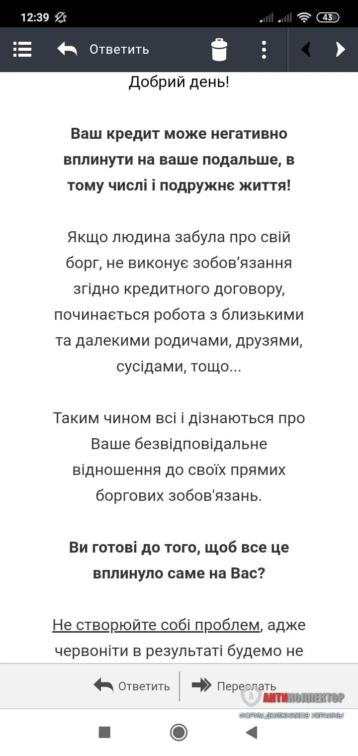 Прислали сегодня типа акция, дайте хоть пол тела и закончим. Я как раз сдала проект, гонорарчик получила, подумала, что 4к после хотелок в 28к, и вчерашнего звонка на работу, это не будет моим слишком большим грехом. Погасила. Прислали гарантийку, квитанцию (фотку) об отправке ее же укрпочтой и целый букет СМС, включая этот мейл. В смсках надеяться на сотрудничество. Ага, щаззз!