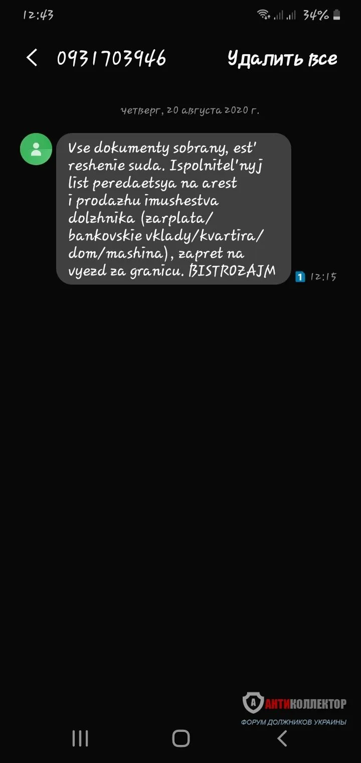 Сегодня пришло от Глобал кредит смс: