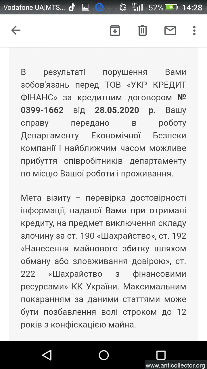 Якщо сьгодні кредит не закриєте, я відправлю інформацію на кредитний комітет з подальшим відправленням інф. до інших компаній