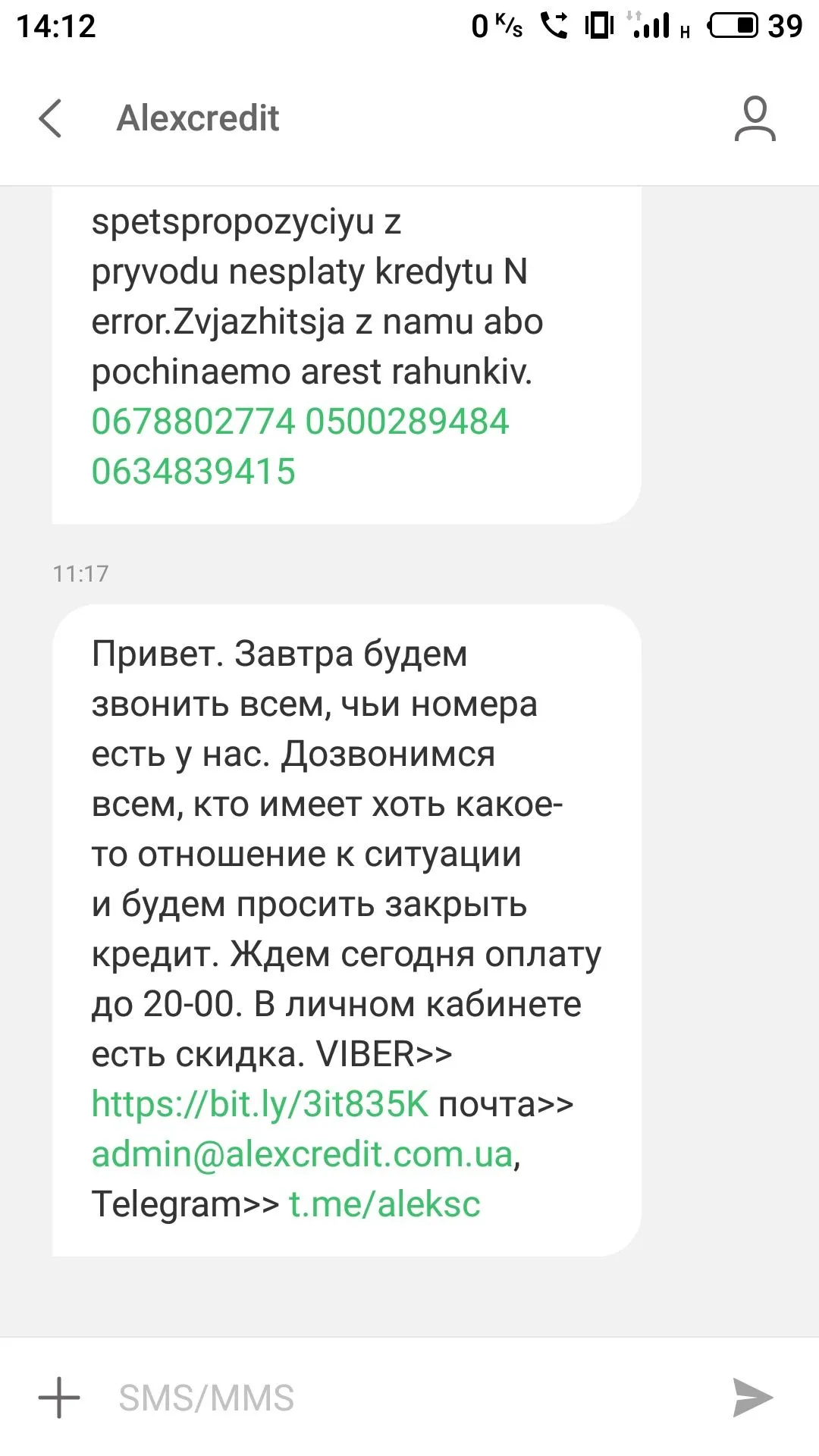 Какая просрочка у вас? Мне пришла смс с предложением оплаты телаВот сегодня пришло от Алексов.Кому-то еще приходило такое?Как к этому относится?