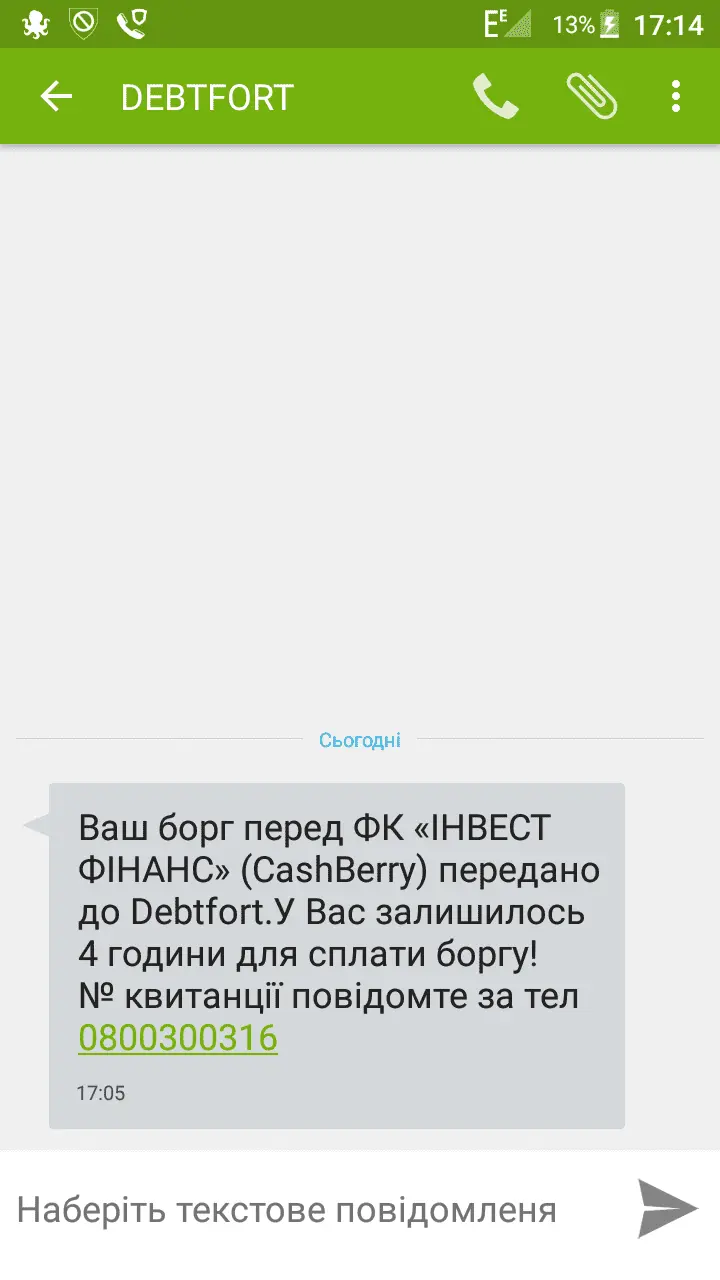 Аферистка, рады вас снова приветствовать на просрочке ! Если сегодня не будет оплаты до 17.00 Сервис кеш Ми ! Юридеческий отдел Сервиса Кеш Ми готов к возбуждению Уголовного дела по ст. 190 УКУ. Санкция статьи предусматривает до 12 лет лишения свободы с конфискацией имущества