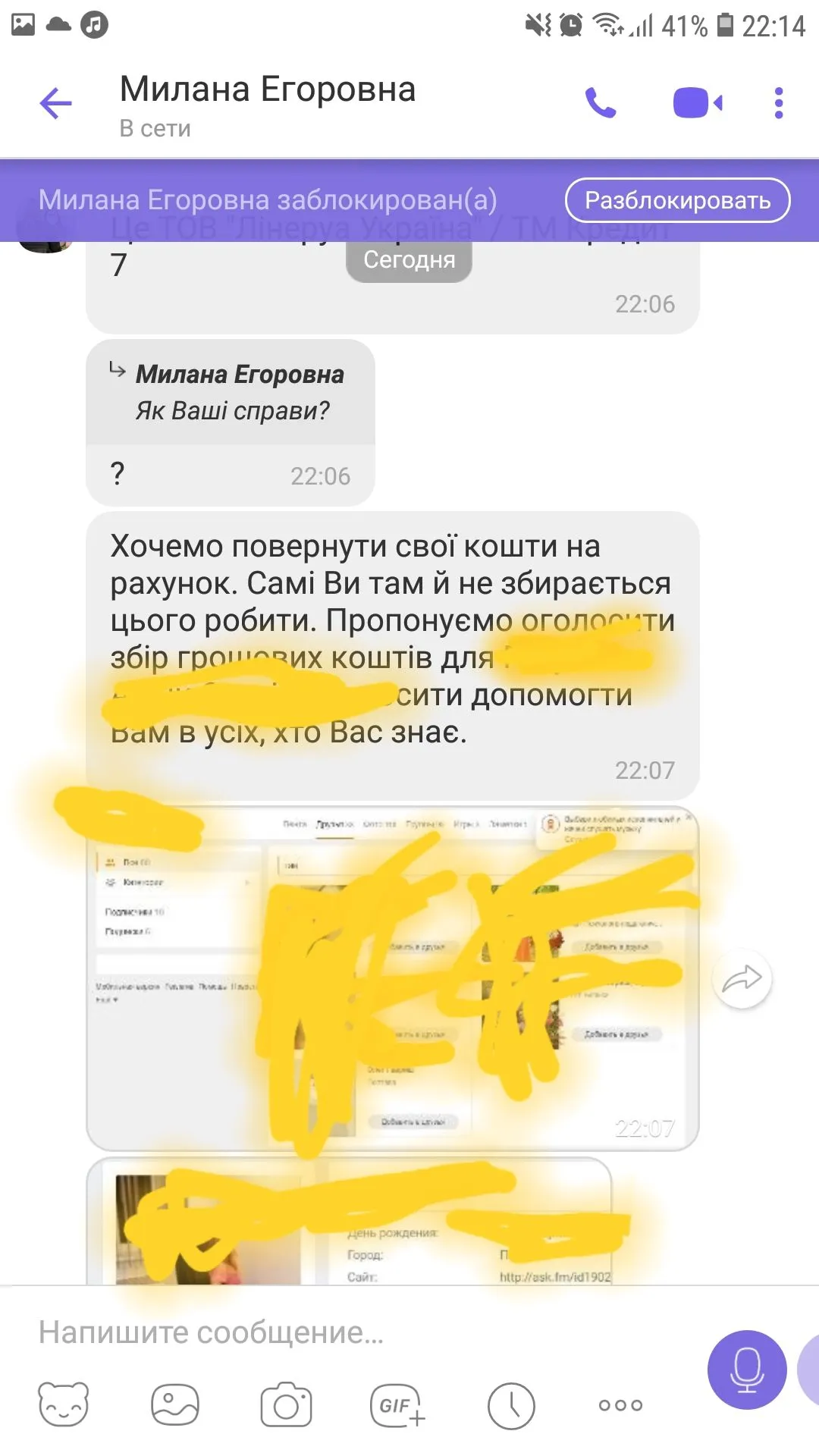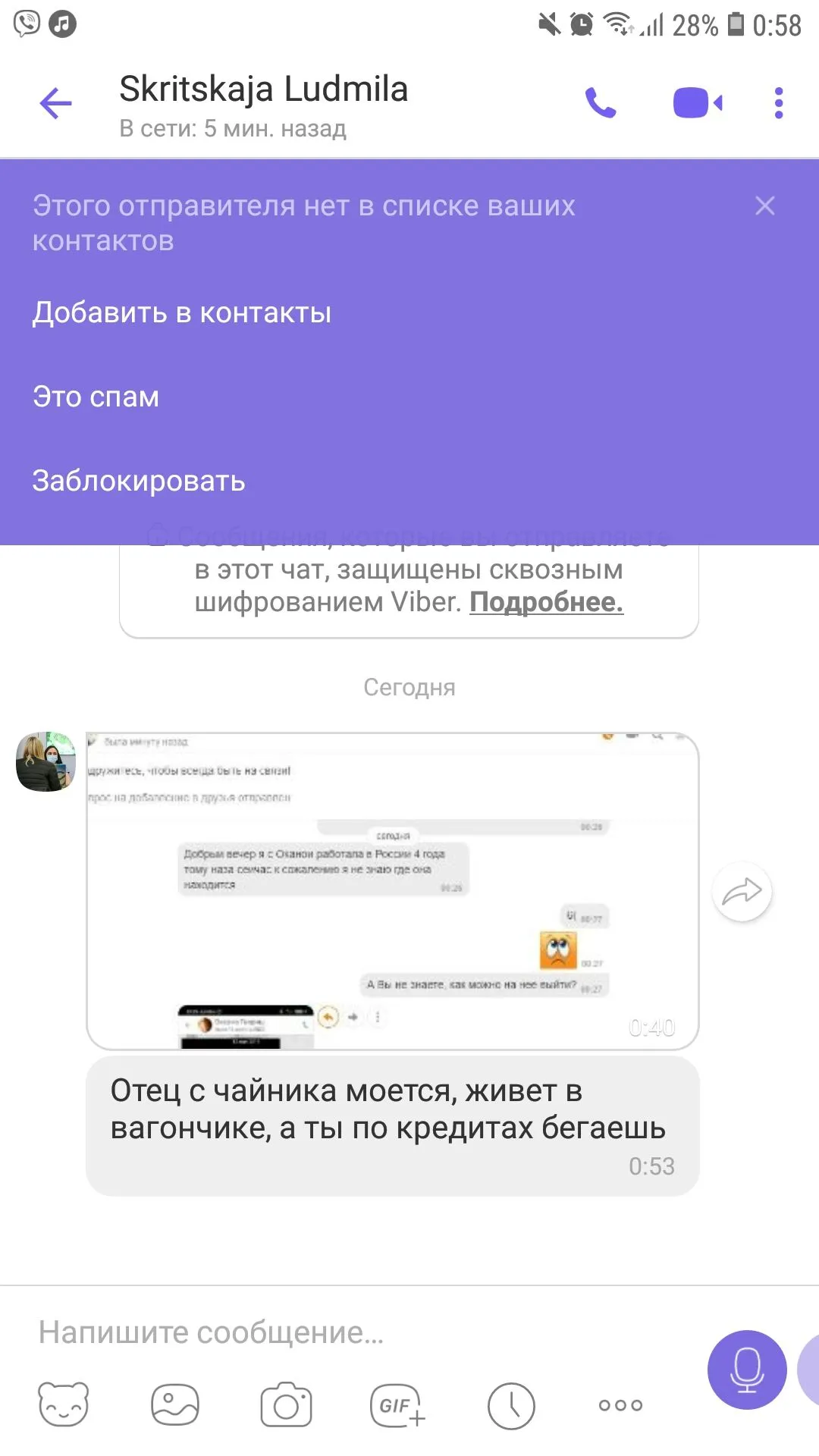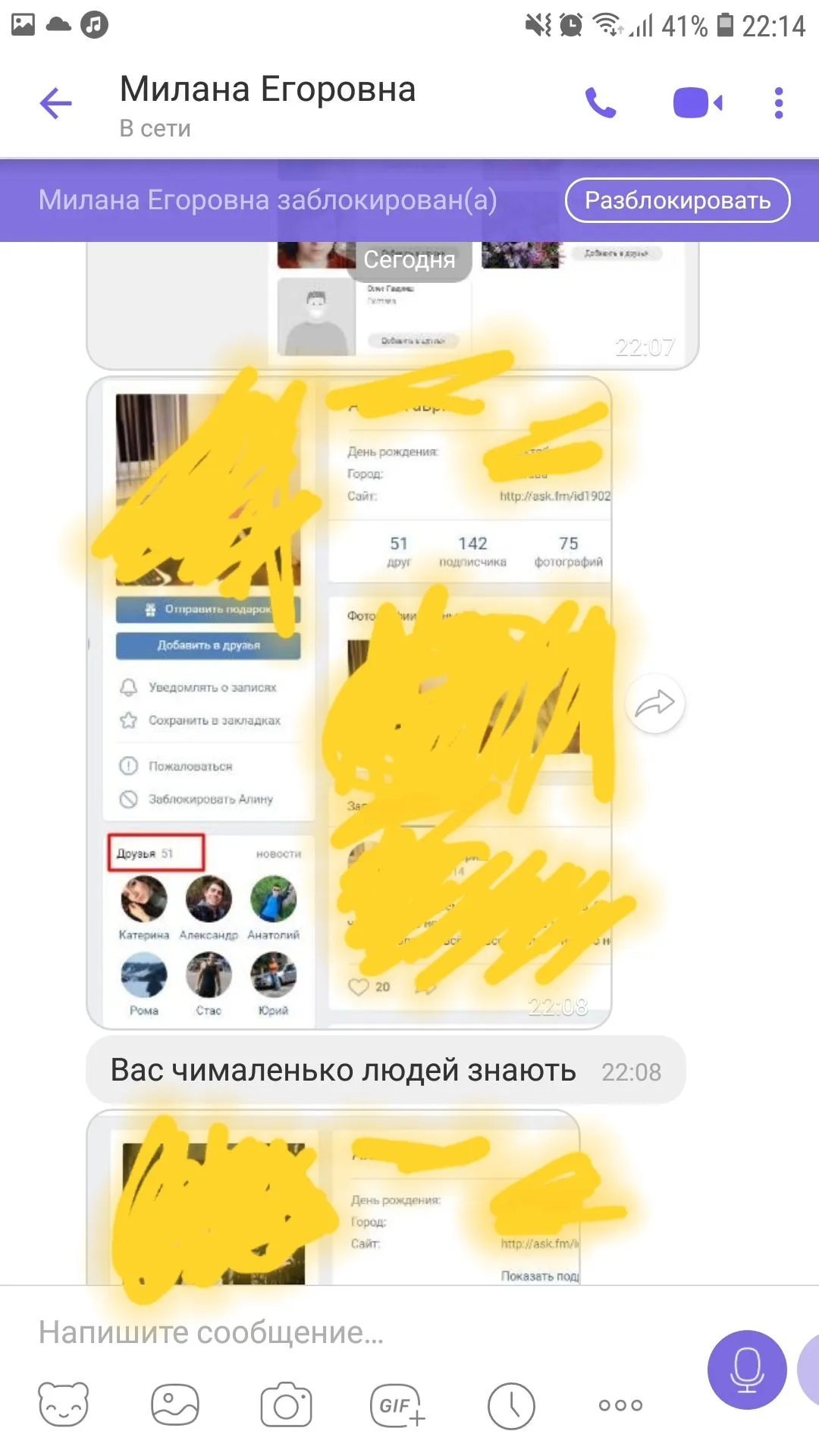 Добрвы день. Вчера вечером после 22:00 пришла СМС в вайбер. Я сразу не поняла кто, так как давно не было СМС в вайбер. Честно сказать взбесило так. Парень сказал не отвечать, но то, что она писала просто выводило из себя. Она нашла мои старые страницы в ВК, о которых я даже забыла. Нашла маму в однокласниках. И написала кому то из её друзей. Как же хочется найти управу на таких твapeй. Да вот только не в той стране мы живём и не ту страну назвали Гондурасом.
