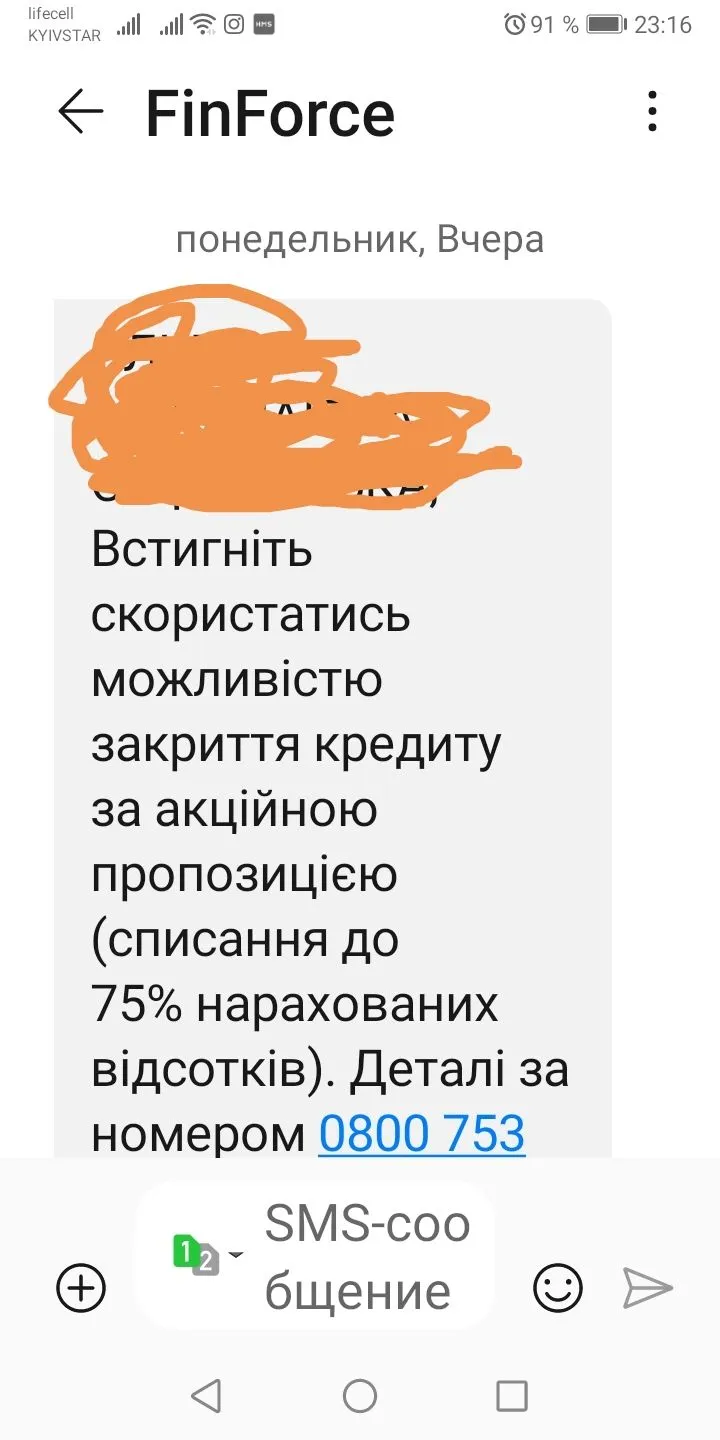 Ви перетнули БОРГОВУ МЕЖУ! Компанія має намір повернути свої гроші. Доба на оплату 0800507570