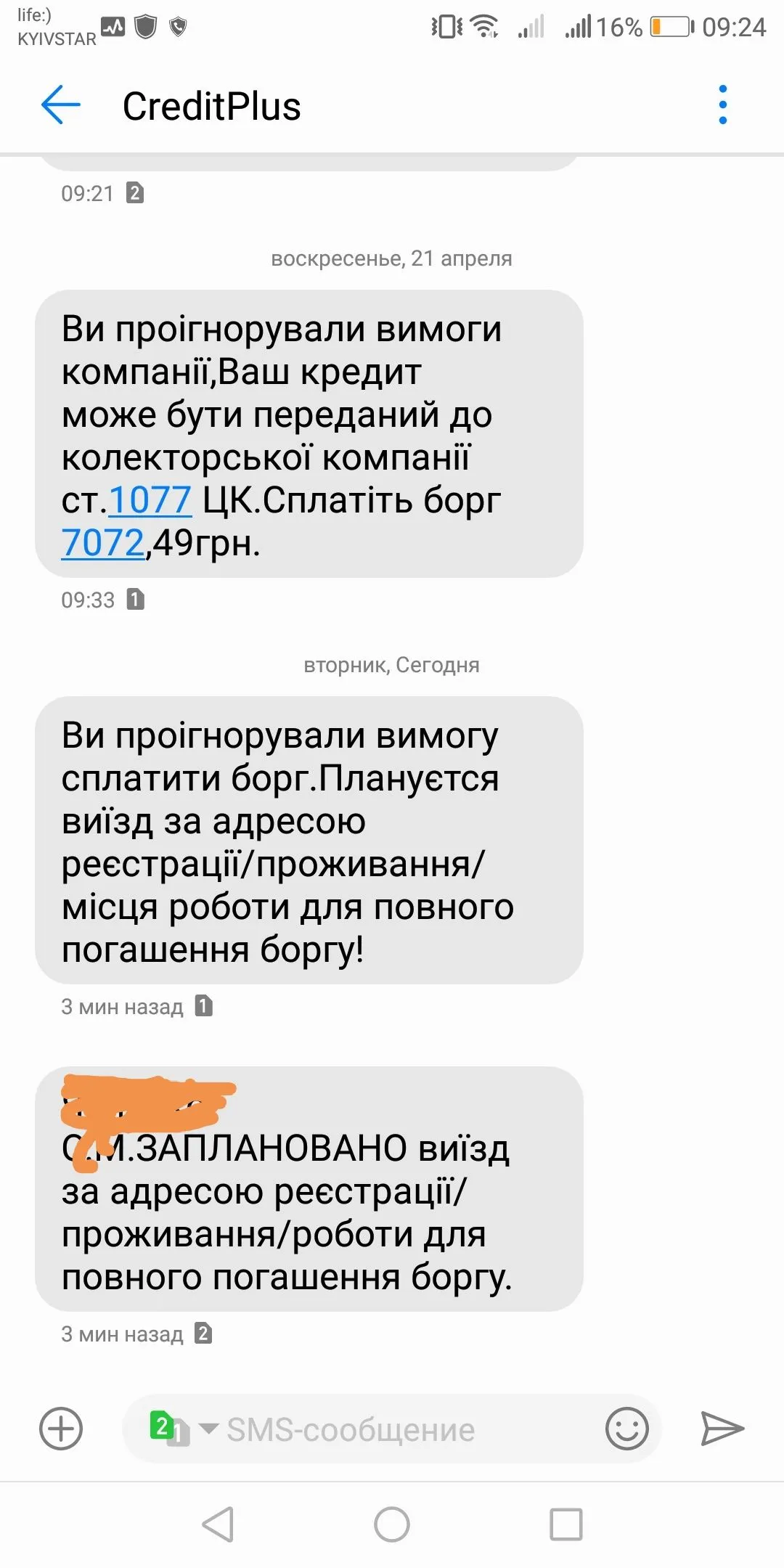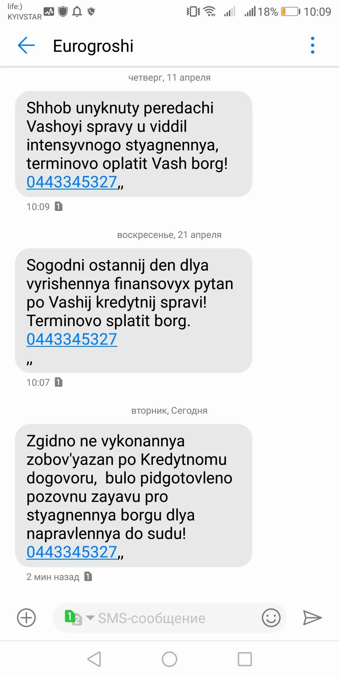 Я понял.Спасибо.Мне такое приходило. А потом пришла такая смс