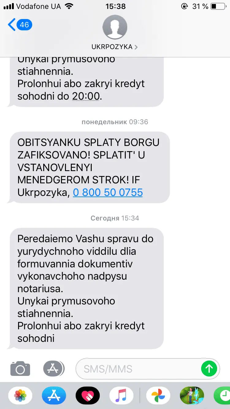 Після 04.10.2021 буде заблокован доступ до особистого кабінету CreditUP, а на протязі 15 днів, а саме 20.10.2021 буде поданий виконавчий напис натаріуса, приватному виконавцю .