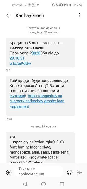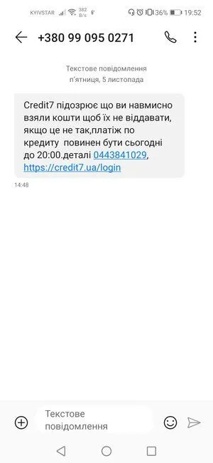 Це прислали бананакредіт, при переході на посилання відкривається зекредіт. Вони б там розібрались в кого я брала