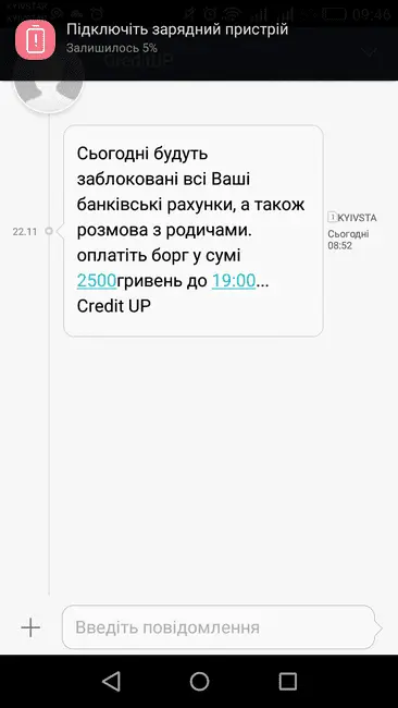 Получила сообщение "Для ........... є цікава пропозиція врегулювання, період дії обмежений, просимо передати інформацію. Тел. 0800600770"