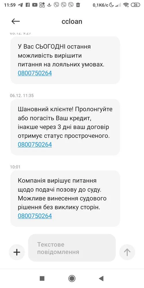 Увага! Вам направлена Досудова Вимога по боргу в ККаса! СВС 0730316553