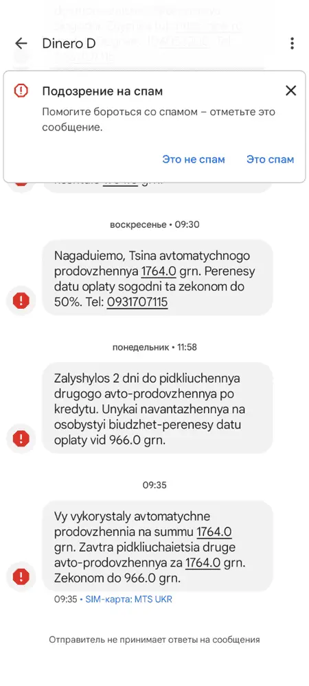 OkiDoki, к жалобе прикрепляете скрины, в НБУ разберутся по номеру телефона, какая именно шарага Вас кошмарит и нарушает законы Украины.