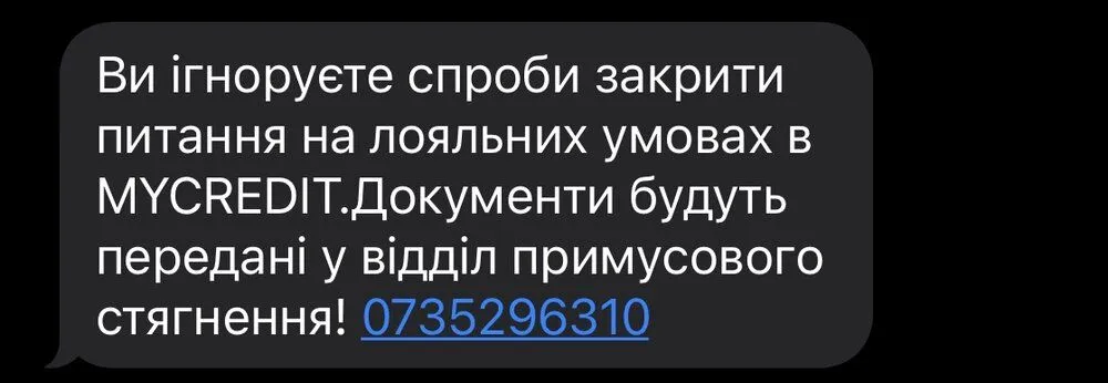 MYCredit сегодня прислали такое смс? Очередная пугаловка с их стороны?
