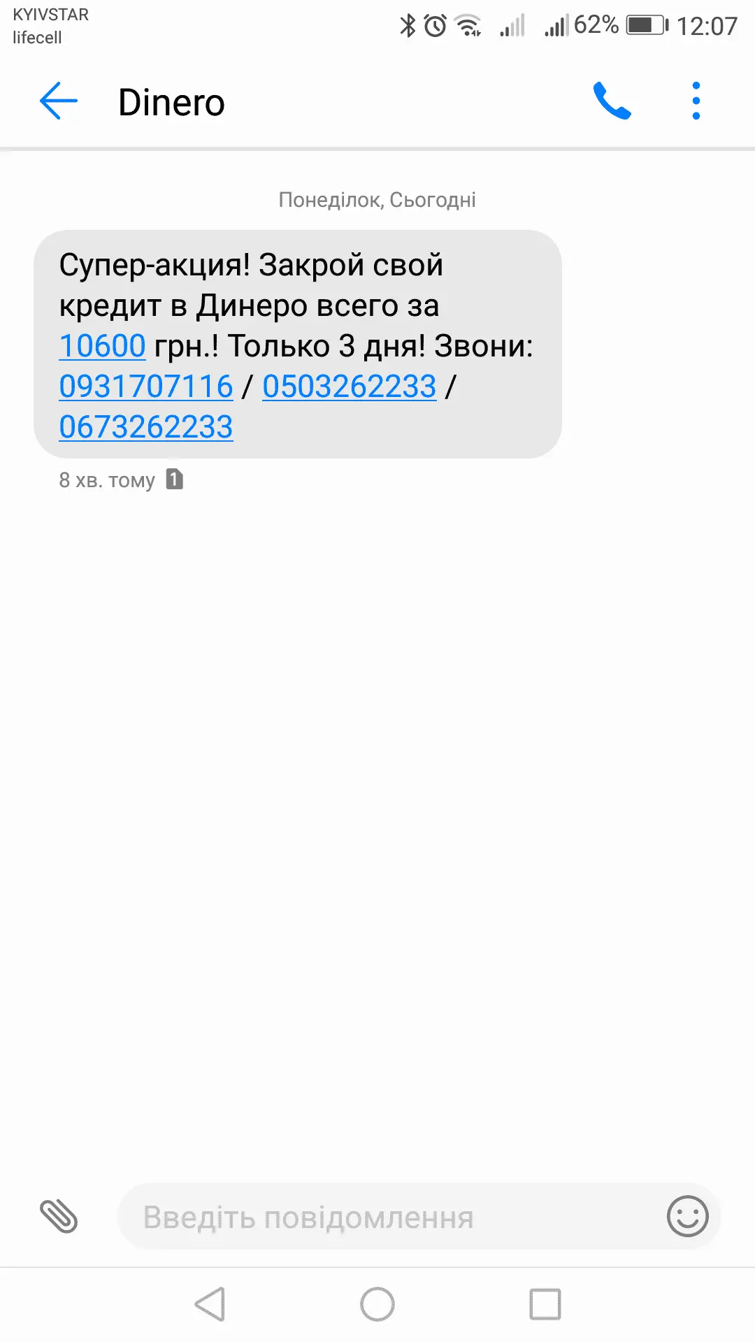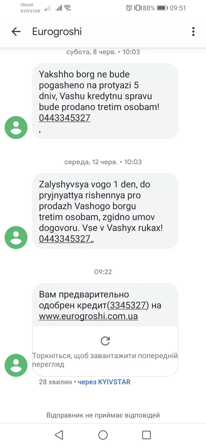 (036) Ваша прострочена заборгованість 4591.25 грн. по позиці в системі Loany www.loany.com.ua передана колекторам.