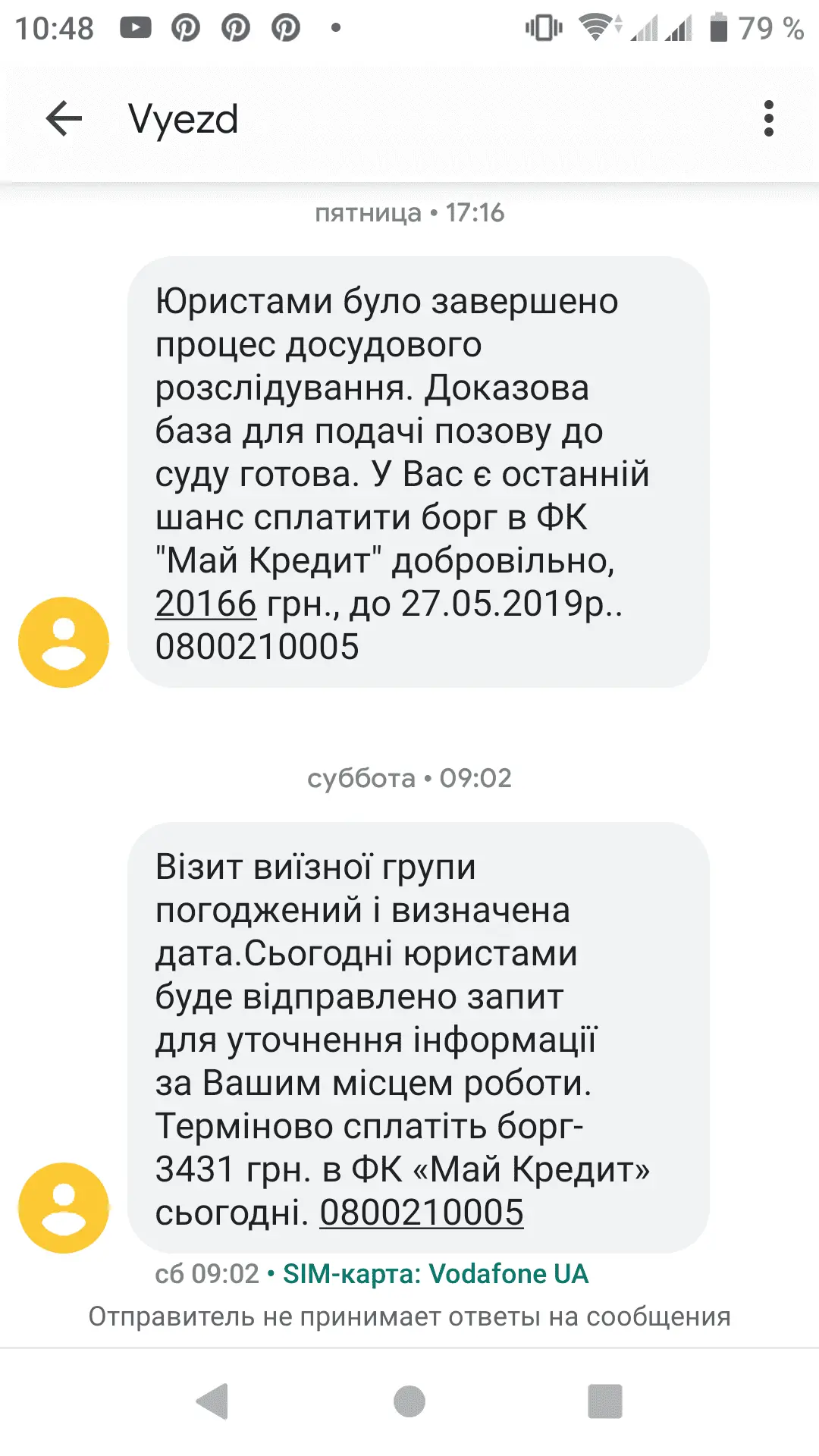 Пришло смс Ваш борг пере д Mycredit переданодо кредітекспрес. Увас 4 години для сплати боргу. Номер квитанціі повідомте за тел. 0443541829. Чого слід очікувати і що робити