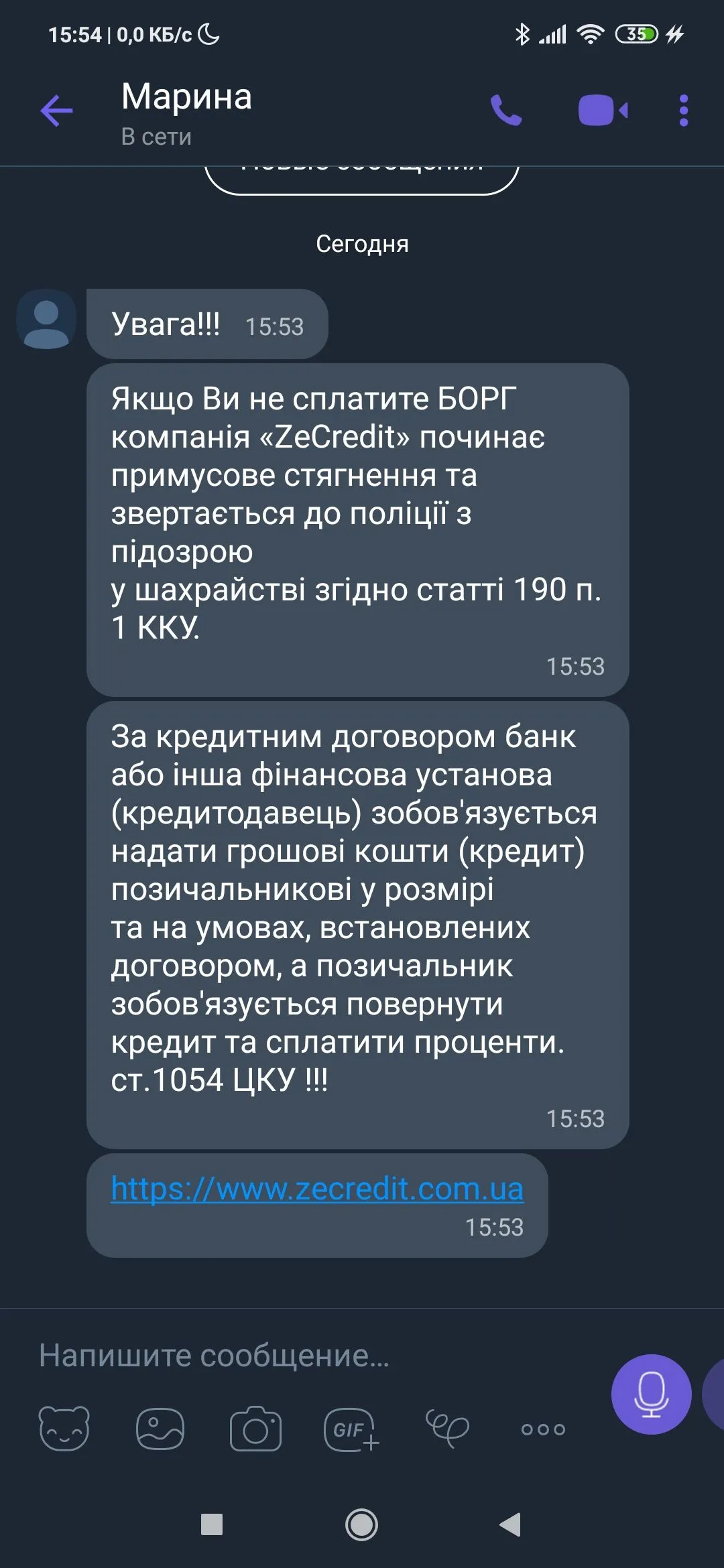 При теле почти в 7к и просрочки в 2 месяца без единственной пролохации звонит раз в день бот и пришло несколько писем о нарушении 190 ст. ККУ ?