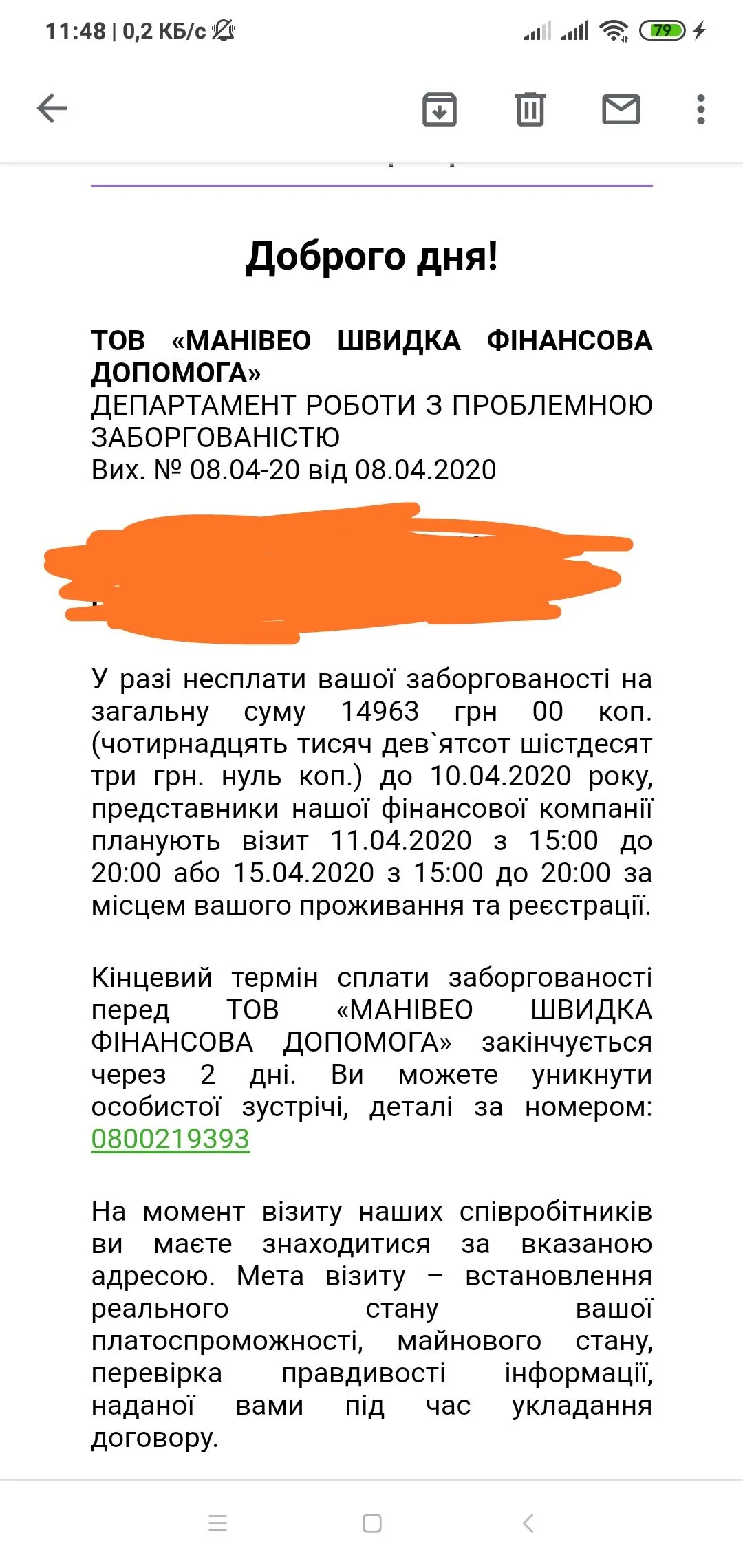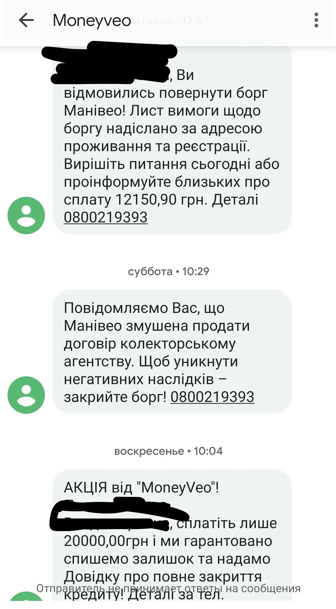 Это понятно,что не приедут. И сейчас карантин больше двух нельзя? но я им говорю,что взяла 20 отдала больше 46 и начинают на психику давить. То проценты, пролонгация и ТД. Ищите деньги спрашивайте у родных и друзей. Говорю я спрашивала нету ни у кого, у всех у самих долги или жить нужно на что-то (реально спрашивала). И после этого шлют смс,что будут близким звонить. Звоните, что за меня кто-то отдаст мифический долг