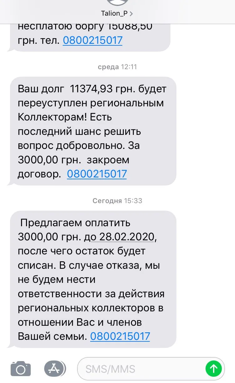 Борг ФИО не сплачено! Відносно боржника буде ініційоване порушення кримінальної справи за ст.190 КК України (Шахрайство). 0800215017 .И после этой смс звонки от них 5 раз вподряд.