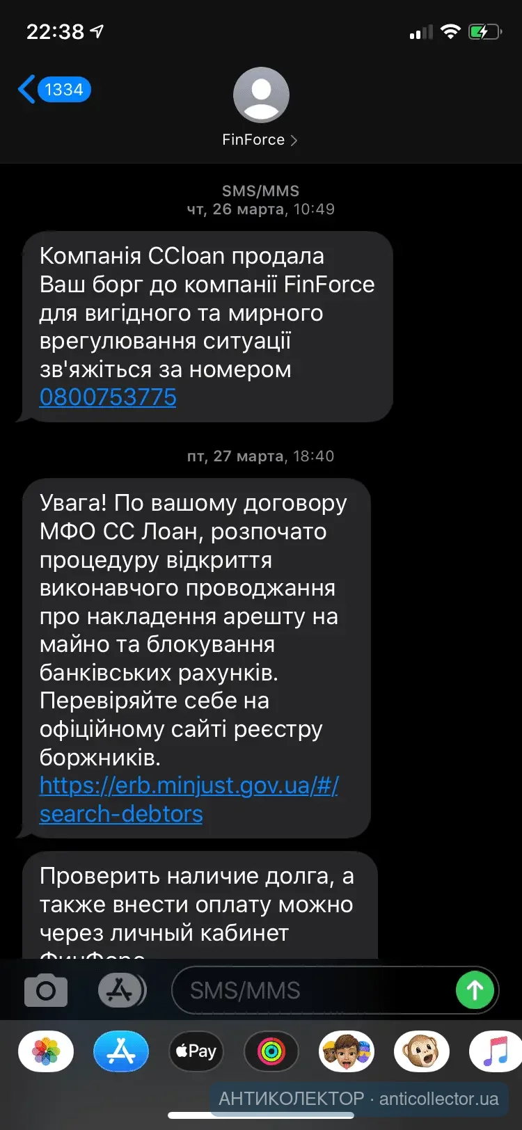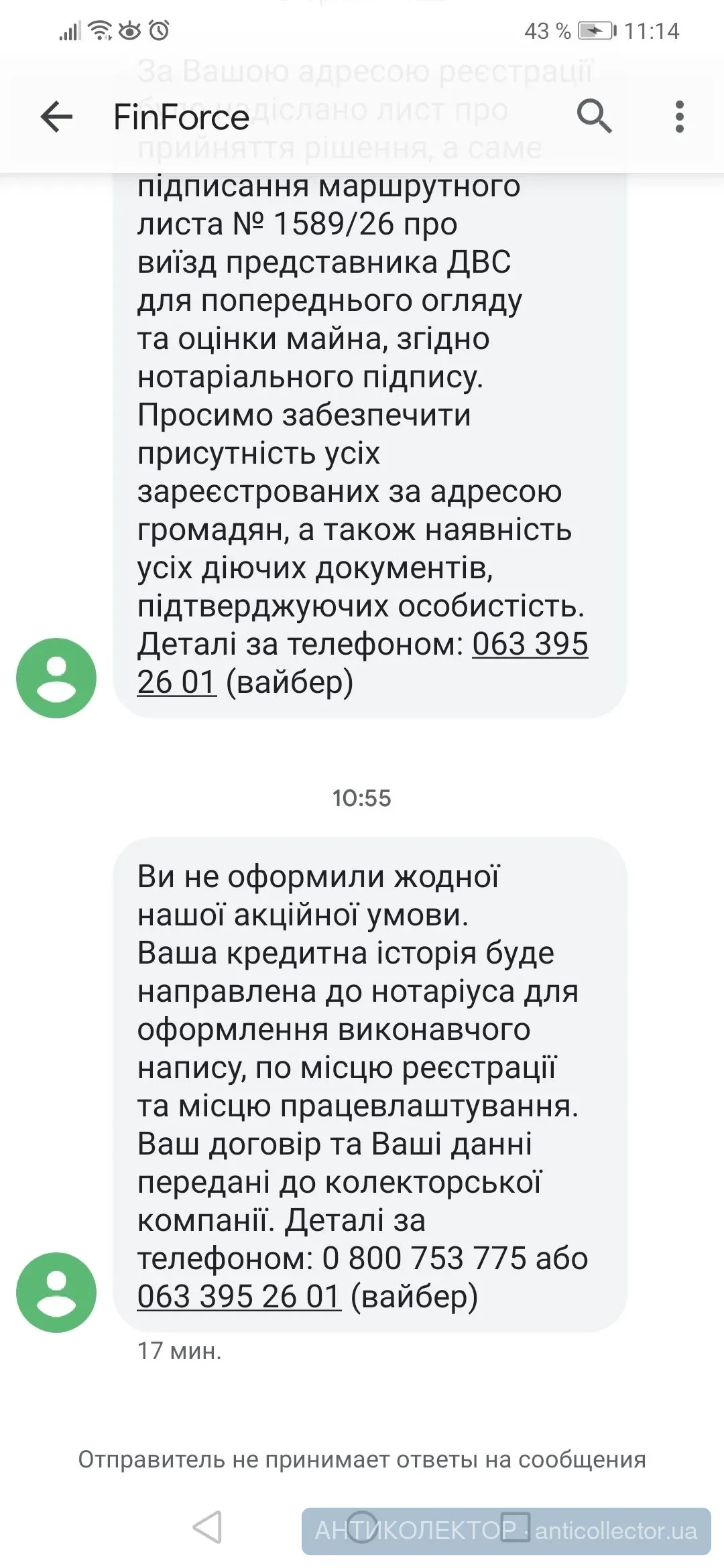 Это на какой день после продажи финфорс вам прислали? У меня только второй день, такие же сбщ и пугают, что во вторник будет ИНПідкажіть будь ласка, як реагувати на дані смс? Я по посиланню не переходила, не телефонувала, слухавку не беру. В Єдиному державному реєстрі боржників немає інформації.