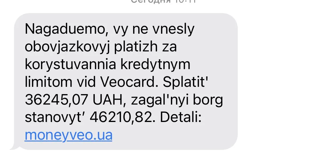тілло кредиту на карті було 10 к. Спочатку прострочень старався поступового якісь кошти на неї закидать. Близько 5 к віддав чисто на відсотки((( після початку війни перестав взагалі вносити платежі. І ось вже близько півтора року прострочення, в кінці місяця присилають ось такі повідомлення захмарними сумами. Можливо хтось був у схожій ситуації по веокард? Пропонували за 20к закрить, попросив гарантійний лист. Але ніхто не його так і не скинув то ж і платіж не вносив. Звінками як на диво задовбоють тільки мене і то відносно рідко, 1-3 рази на місяць.