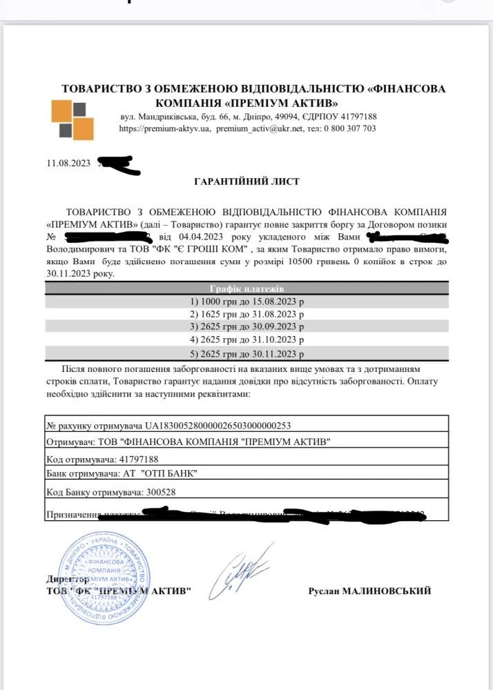 Доброго дня! Підскажіть будь-ласка, чи можна вважати це гарантійним листом ? Планую закривати згідно графіка. Що потрібно ще уточнити, щоб не натрапити на підводні камні?