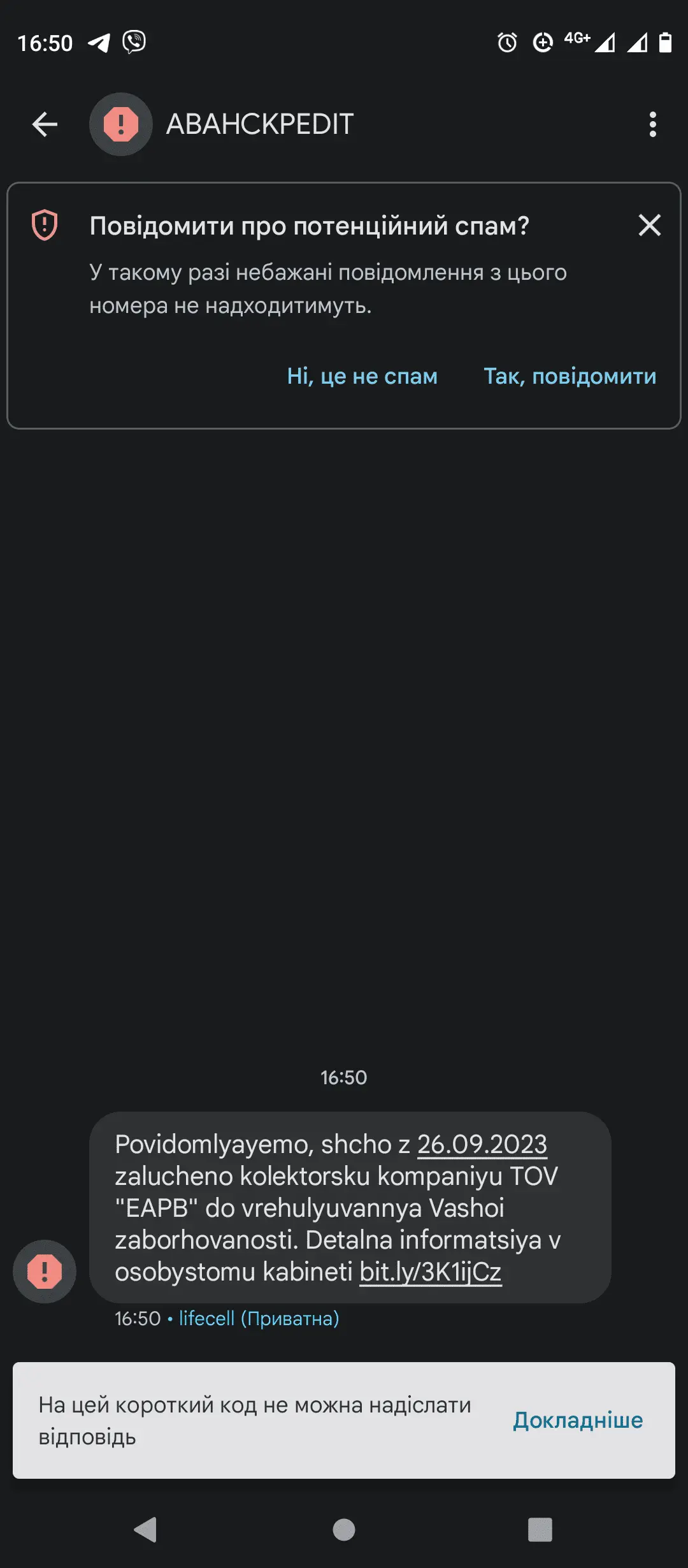 Якесь цікаве смс прийшло це аванскредит) вчора передали до ЕАПБ,а сьогодні ось таке прийшло
