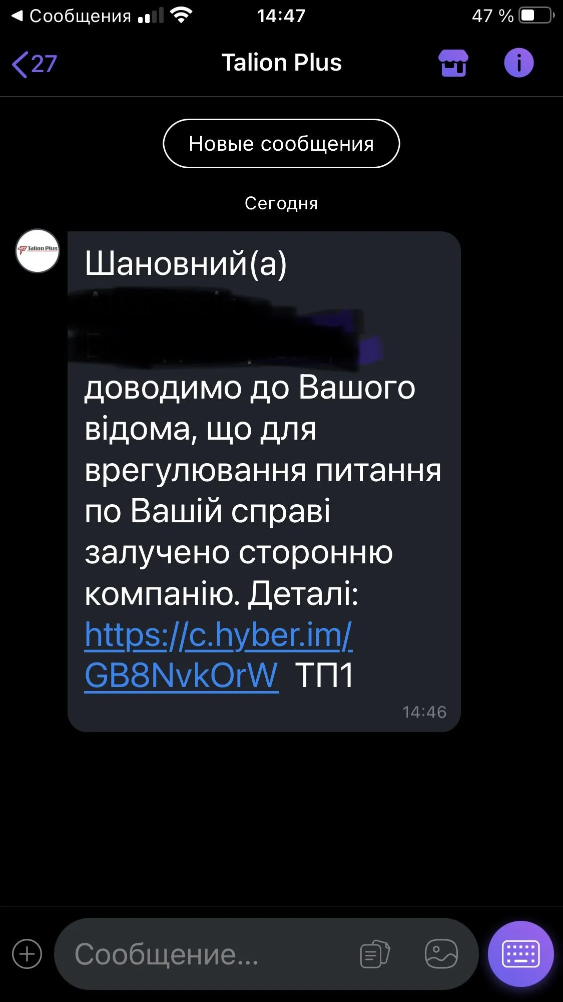 Талион прислал такое смс, что это значит?
