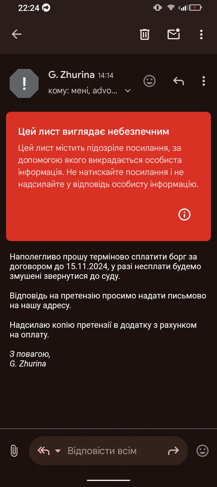 Ось такий дивний лист претензію я отримала на ел.пошту