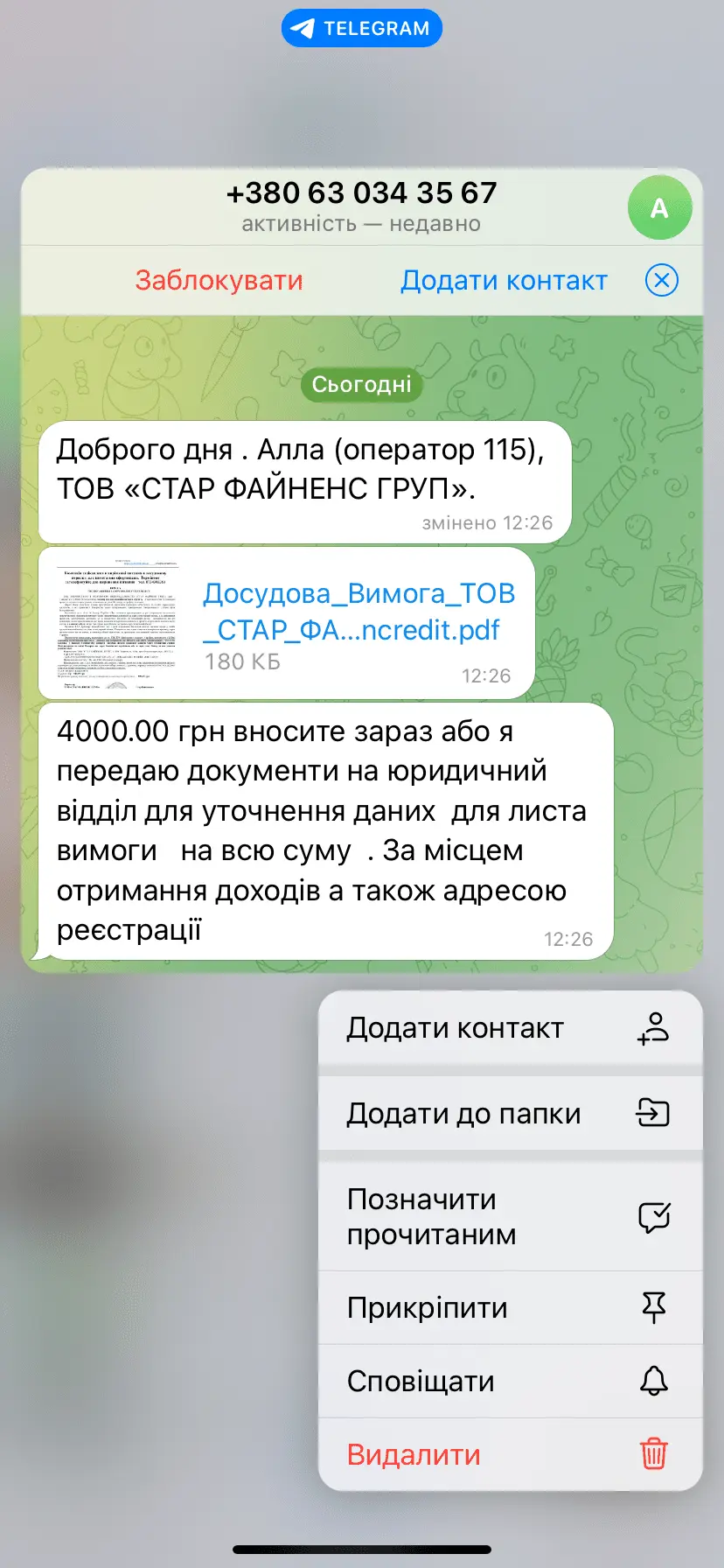 Це просто тиск , вони нічого робити не будуть , просто пишуть вам на телеграм , це їх максимум , через місяць протермінування запропонують тіло .що це значить? Просто психологічний тиск чи треба вже бити тривогу?