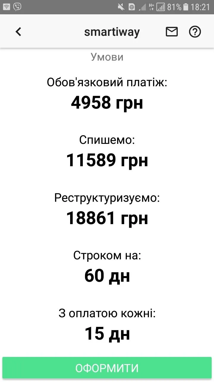 2 місяці прострочки брала 15 а тепер 35...але реструктуризацію пропонують ..але я такої суми немає зараз щоб їм кинути
