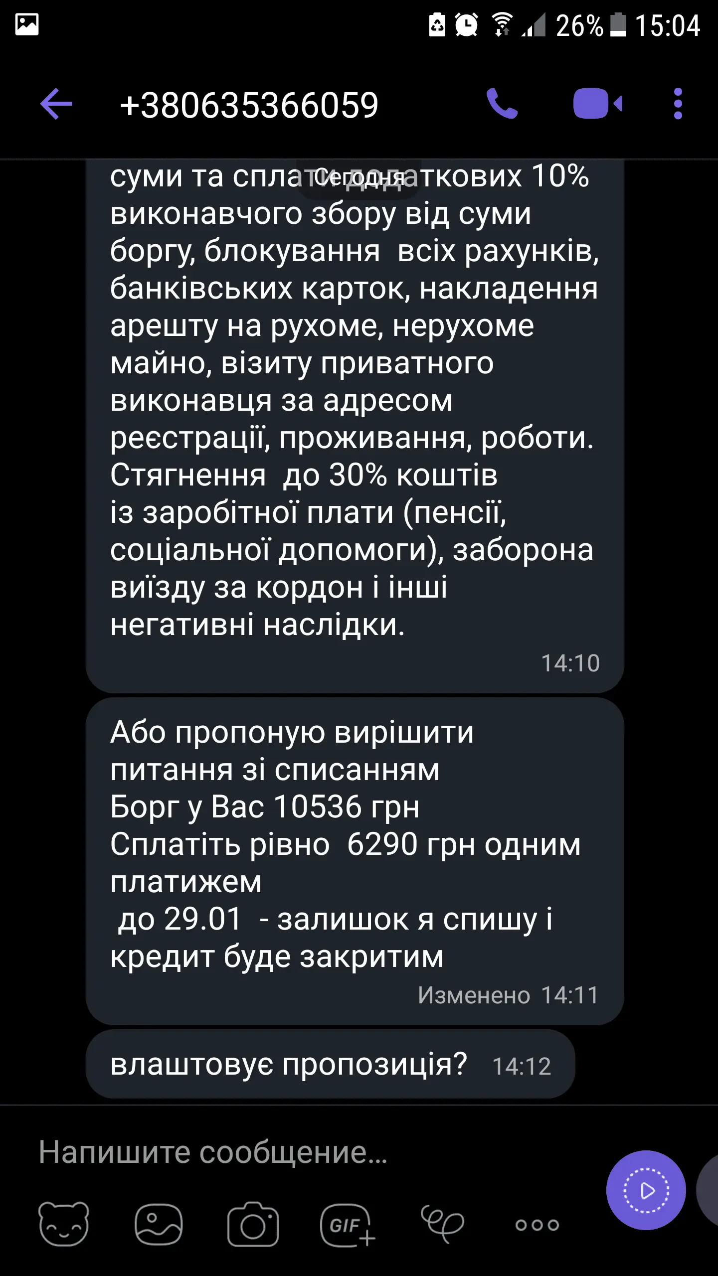 Добрый день, форумчане. Залезла в глубокую .... дыру. Вот пришло такое сообщение от кредит+ . Есть борг там. Тело было 5 000, прострочке 2 месяца. Брала на очередную пролонгацию .